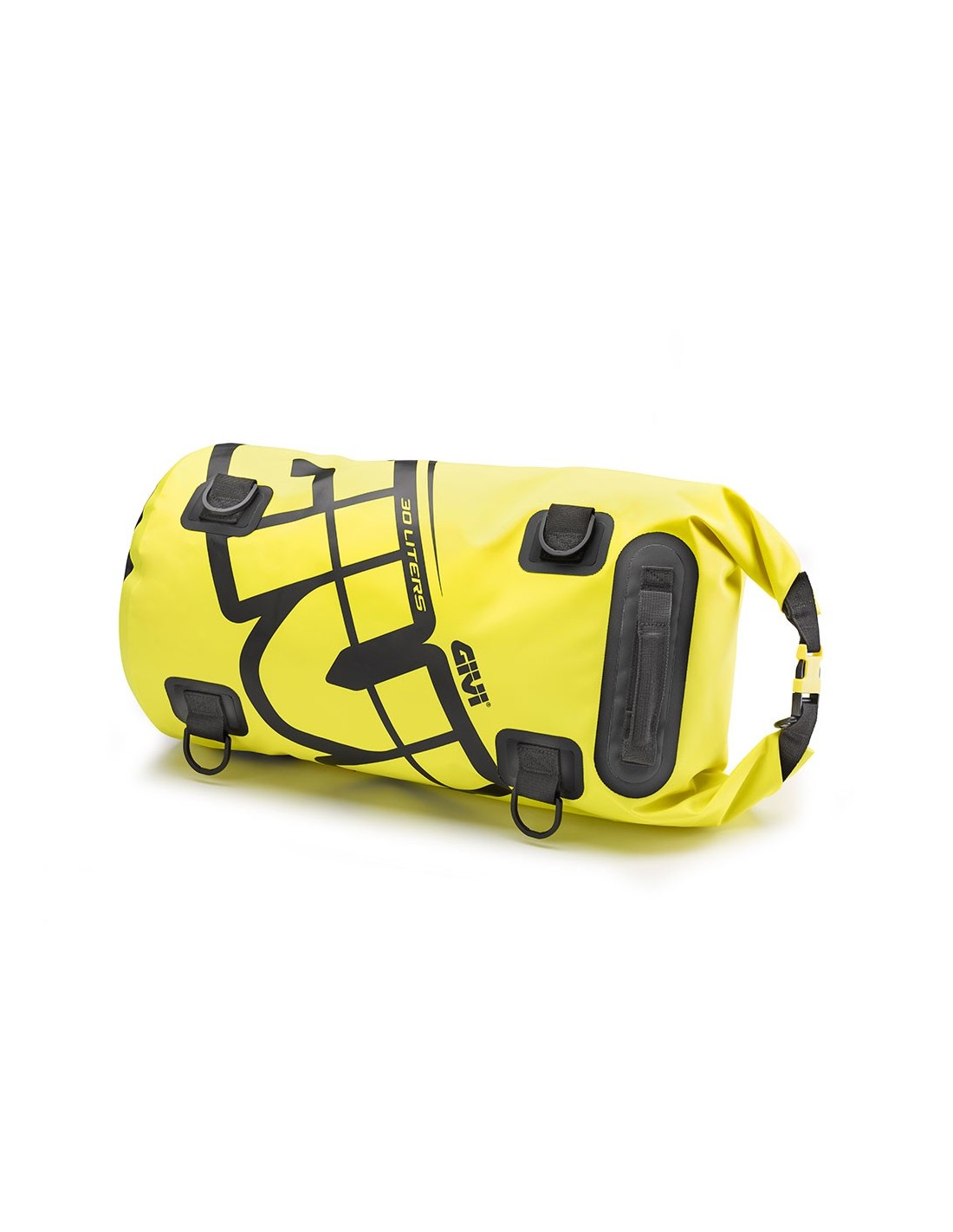 Bolsa cilíndrica impermeable para sillín o portapaquetes, 30 L., con gráfica amarillo fluor