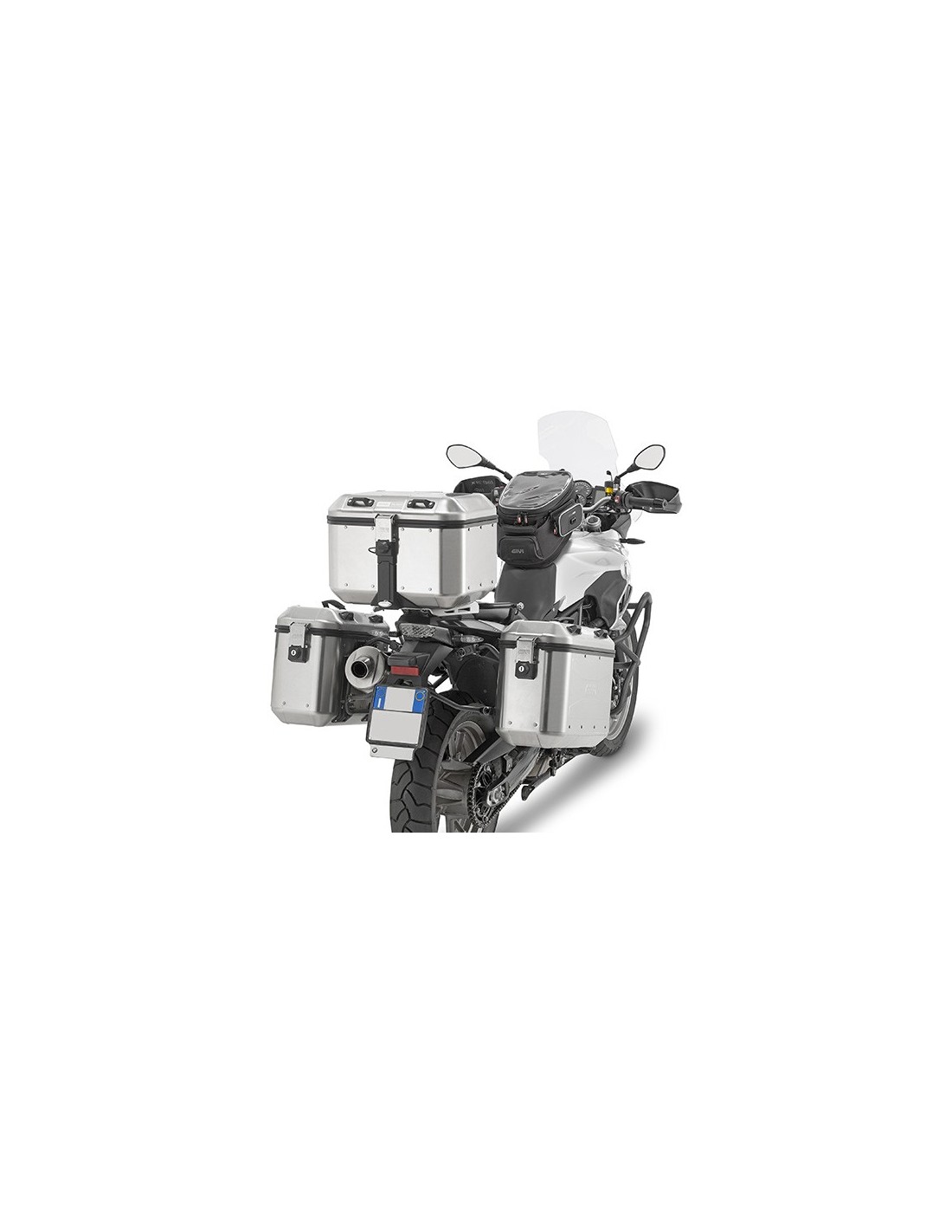 Esta maleta de 46 L., desarrollada para ubicarse en la parte posterior, se fija a la moto mediante una parrilla MONOKEY®.