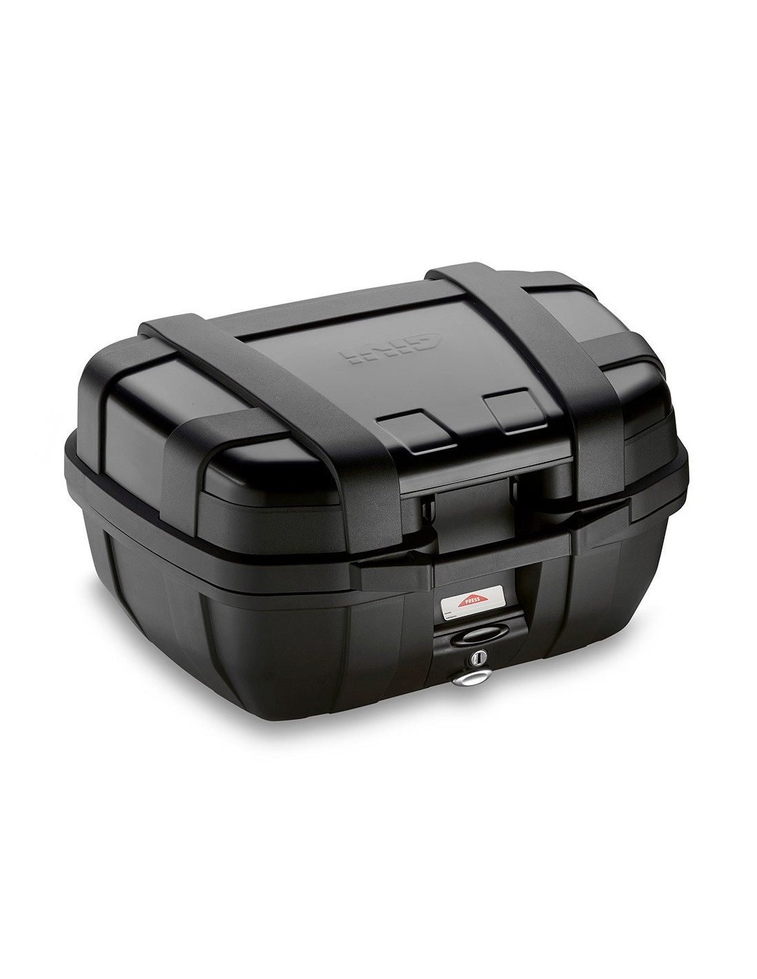 Con sus 52 L. de capacidad, que permiten guardar cómodamente 2 cascos modulares o integrales, esta maleta de espíritu aventurero garantiza una notable rigidez estructural, gracias a la mezcla de tecno polímeros que la componen.