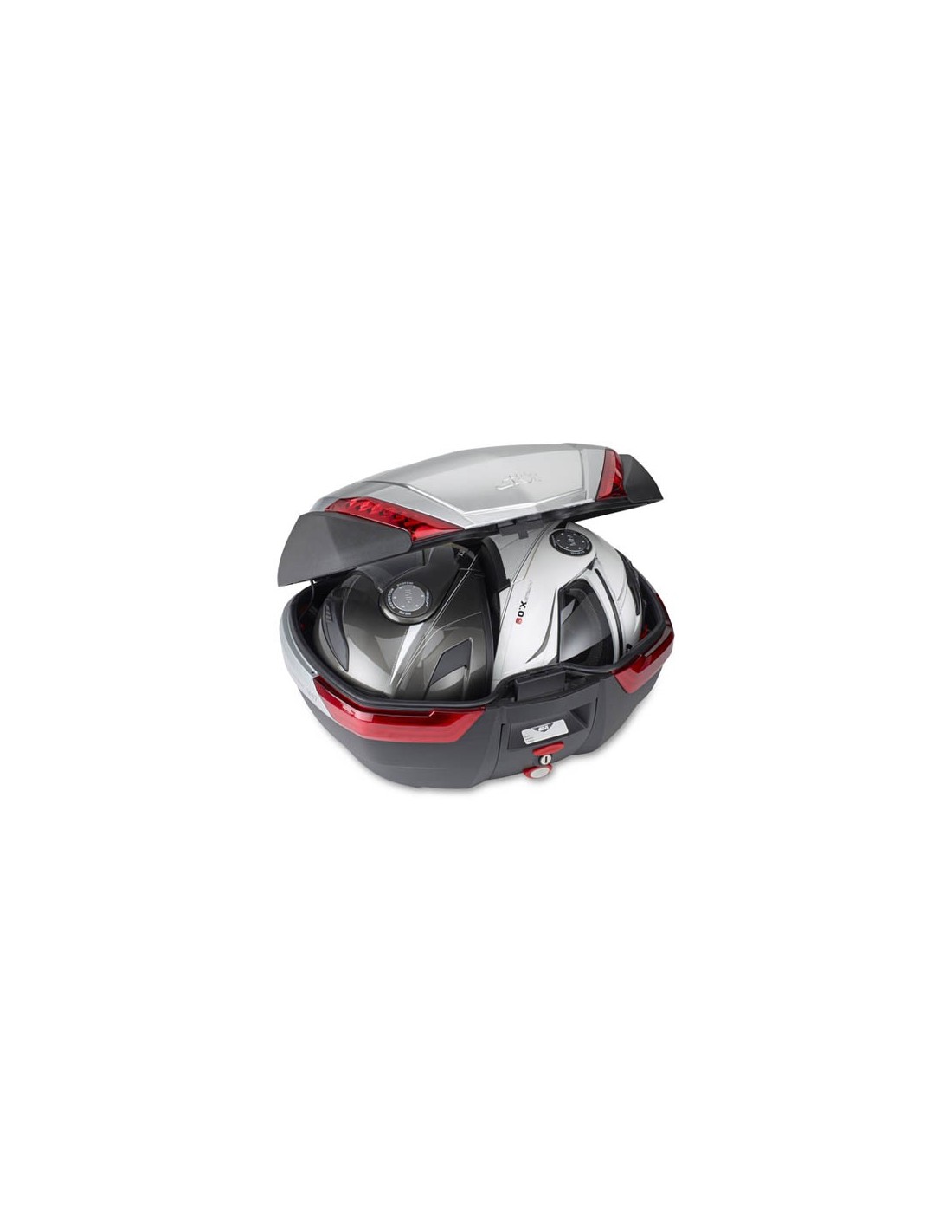 Especialmente apropiada para motos touring de carretera y maxiscooter, esta espaciosa maleta con sistema de fijación MONOKEY® puede albergar hasta 2 cascos modulares, a pesar de sus dimensiones compactas.