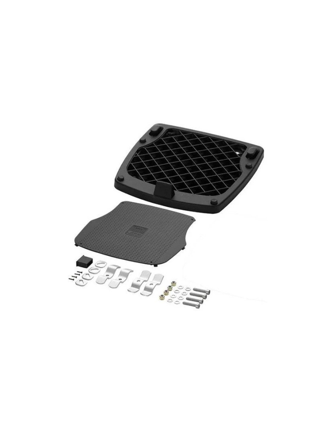 Placa universal MONOKEY® completa con kit de fijación para el uso de top case en motos y scooters ya equipados con portaequipajes