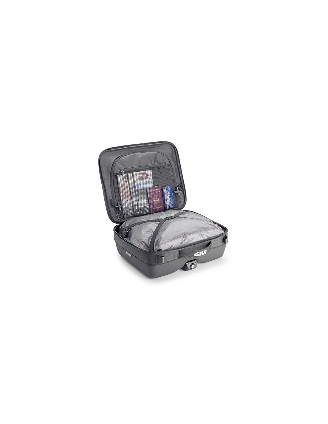 Con sistema de fijación MONOKEY®, com bolsa interna impermeable extraíble. Apta como top bag