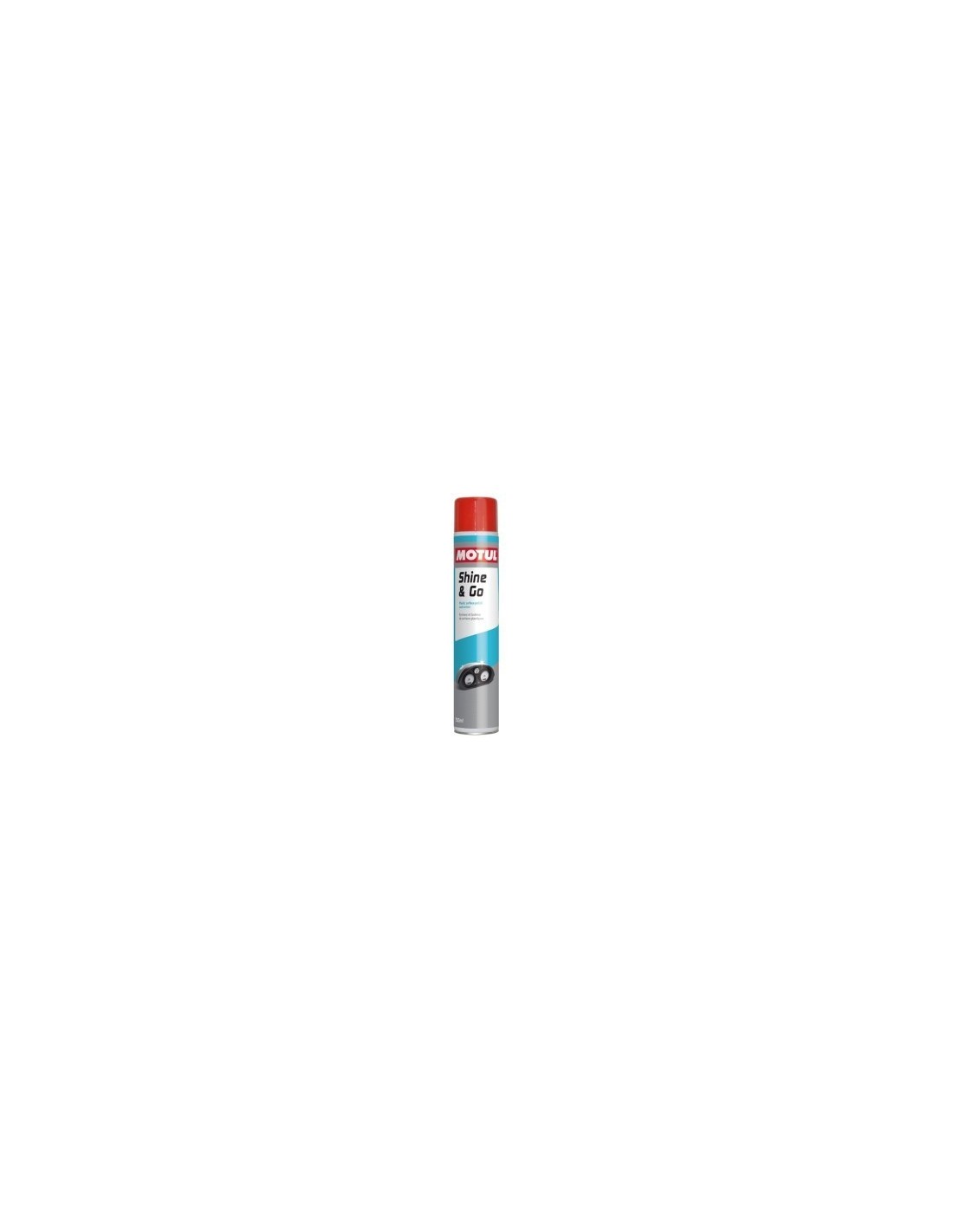 Motul Shine &, Go, Spray Aerosol Prestaciones Abrillanta y reaviva los colores de todas las superficies de plástico, pintadas y barnizadas. Seca uniformemente y deja una película protectora antiadherente duradera. Protege la pintura y el barniz del polvo, insectos, barro, etc. Repele el agua y la suciedad. Recomendaciones de uso Si la motocicleta está muy sucia, lávela con MOTUL MOTOWASH. Agite el producto MOTUL SHINE &, GO antes de su uso. Pulverizar desde una distancia de 25 cm. Permita unos segundos de secado. Abrillante con un paño suave para obtener un acabado perfecto. PRECAUCIÓN: No aplique el producto en las empuñaduras ni en el asiento.