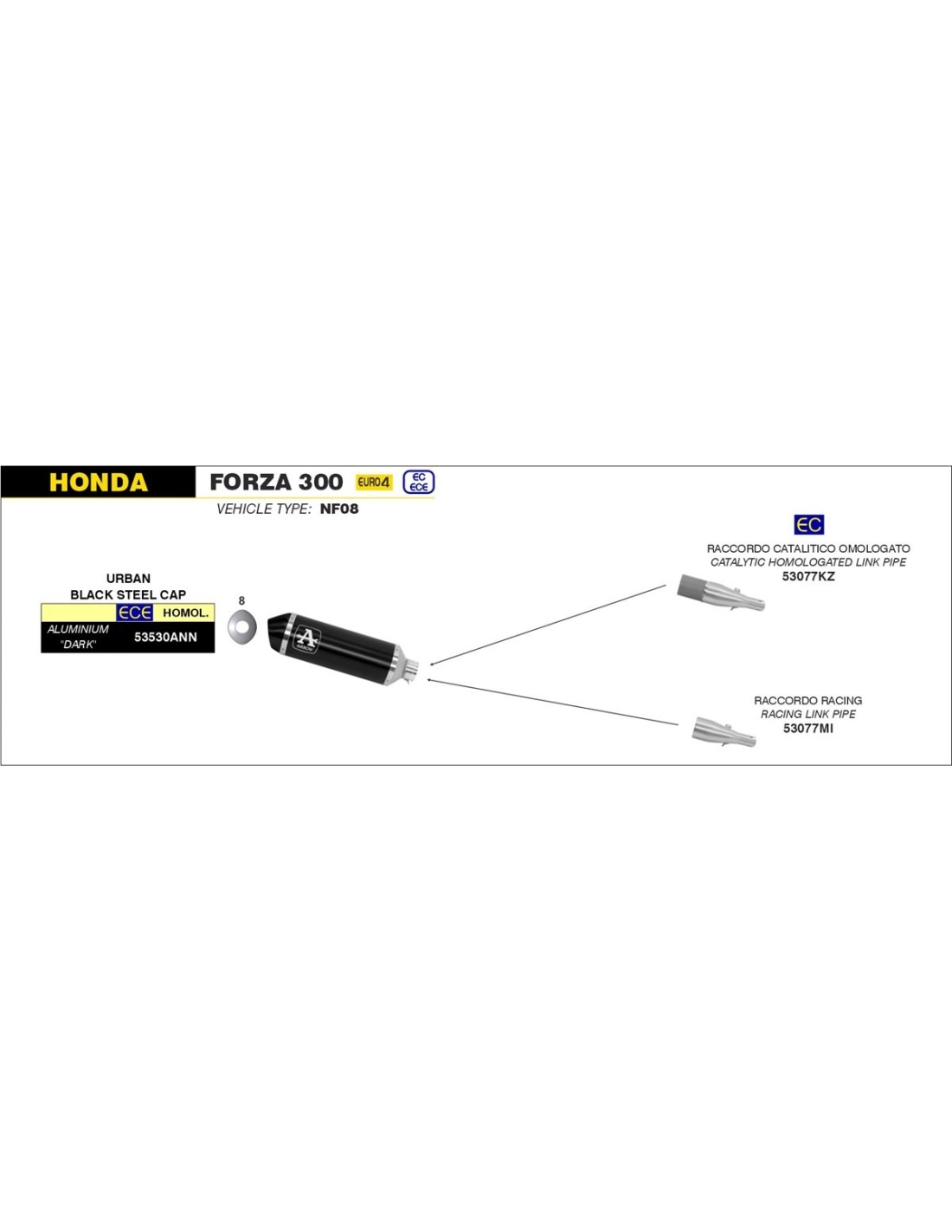 ARROW Conector catalítico homologado para escape Urban