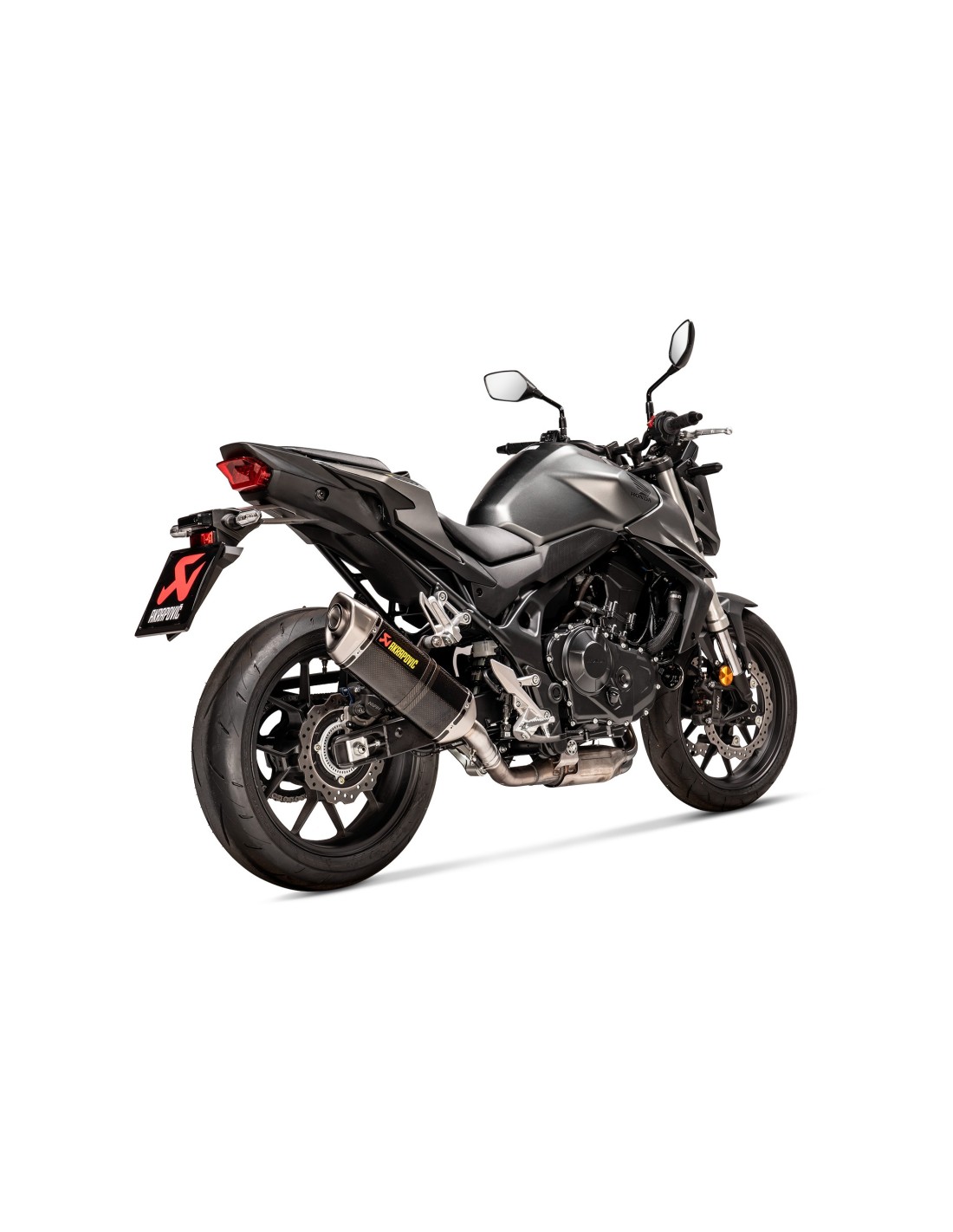 El peso se reduce en un 45,6 % (1,8 kg) en comparación con el escape estándar. Se observan ganancias de potencia y par, especialmente en el rango medio-alto de revoluciones, con incrementos de 0,5 kW (0,7 CV) a 5250 rpm y 0,6 Nm a 5300 rpm, respectivamente, en comparación con una Honda CB750 Hornet equipada con un sistema estándar y probada en el banco de potencia interno de Akrapovič.