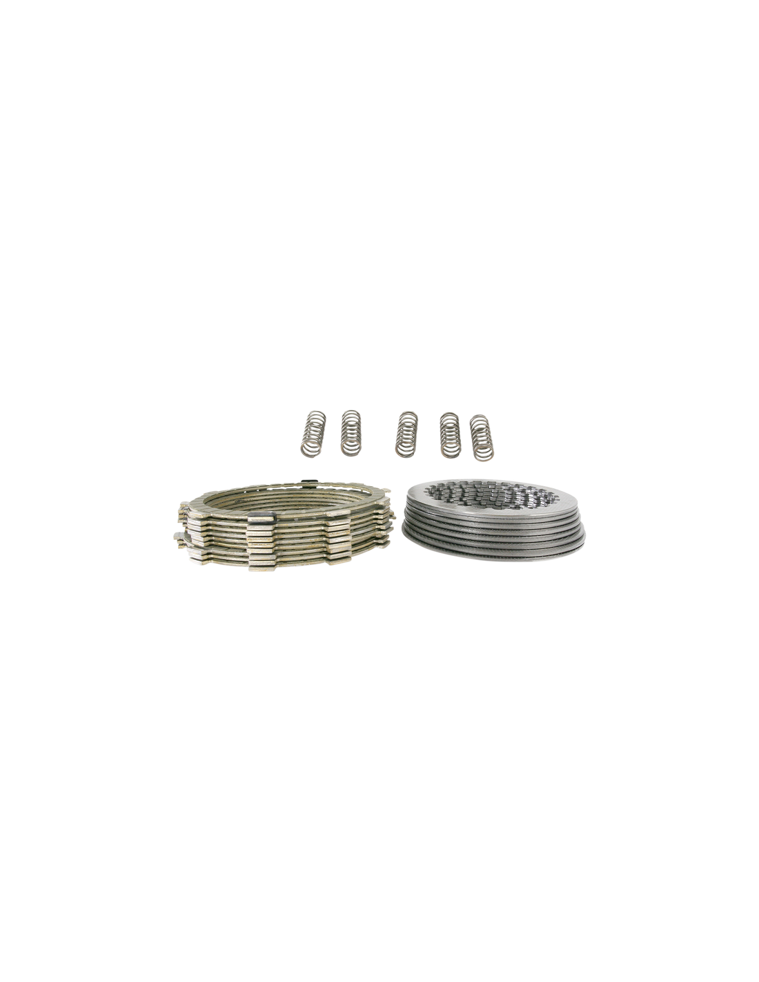Set completo de discos de embrague serie SRK. - Discos revestidos de kevlar. - Muelles reforzados inlcuidos. - Platos separadores de acero incluidos. Si no encuentras tu moto, contacta con nosotros.