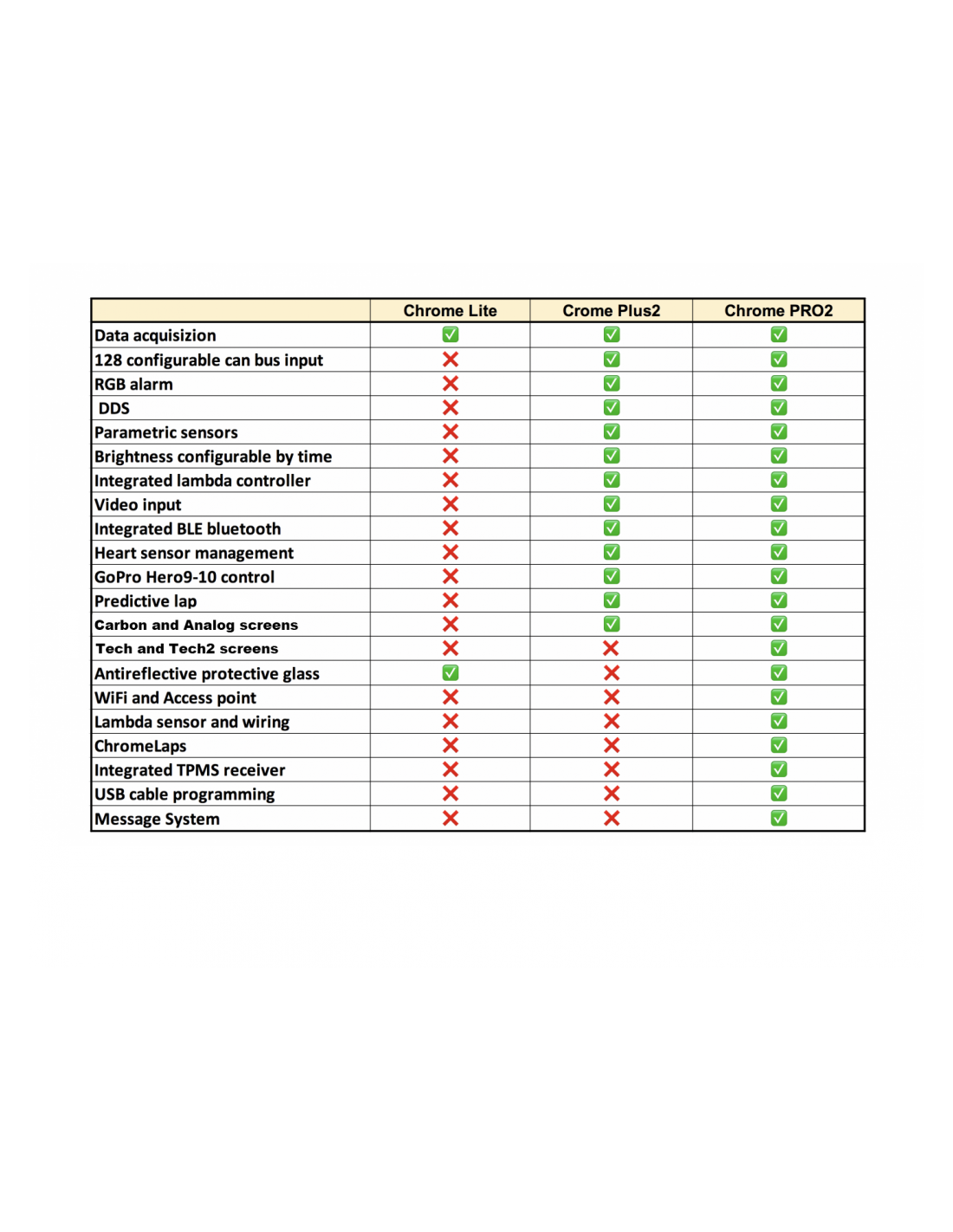 Gracias al nuevo PLUS2, la familia Chrome aumenta aún más su rendimiento dejando al usuario la posibilidad de elegir la versión que mejor se adapta a sus necesidades. La tabla al lado resume las principales diferencias entre nuestros tres Chrome.