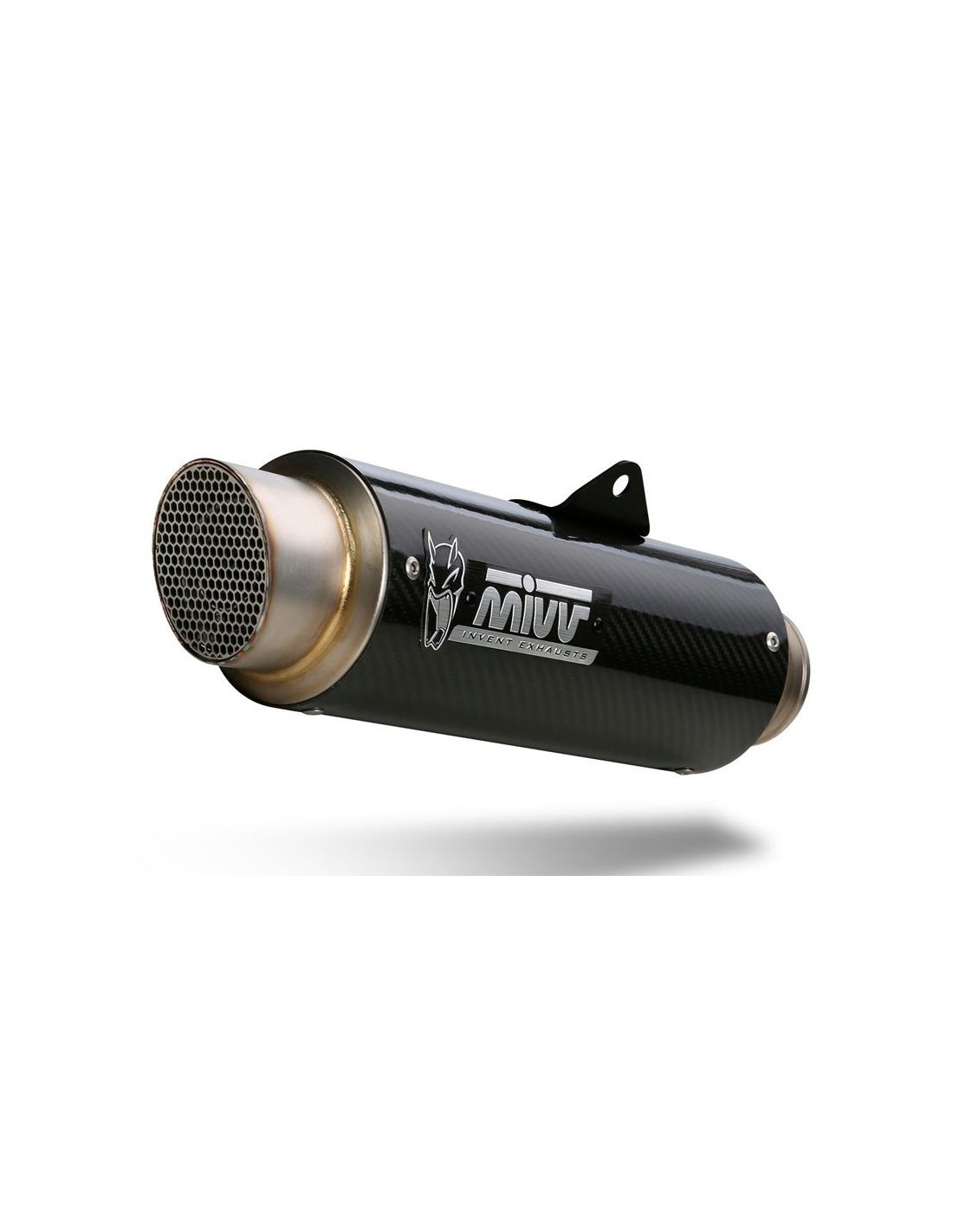 Hecho para mejorar estética, sound y rendimiento de la moto, el escape slip-on Mivv nace a partir de la máxima atención al diseño, con el objetivo de satisfacer a los que quieren distinguirse, también por el look de su propia moto. GP PRO tiene una soldadura a TIG semiartesanal, un diseño compacto y esencial y un sonido agresivo. El tubo de salida gracias a la inspiración del mundo de las competiciones está equipado con una reja de protección removible que esconde el dB-killer. En el terminal está el caracteristico logo Mivv realizado por la tecnología Laser. Se caracteriza por un cuerpo central de acero inox negro con efecto cepillado “Black Moon”, obtenido por un proceso de coloración especial. Esta versión da al producto un aspecto más agresivo.