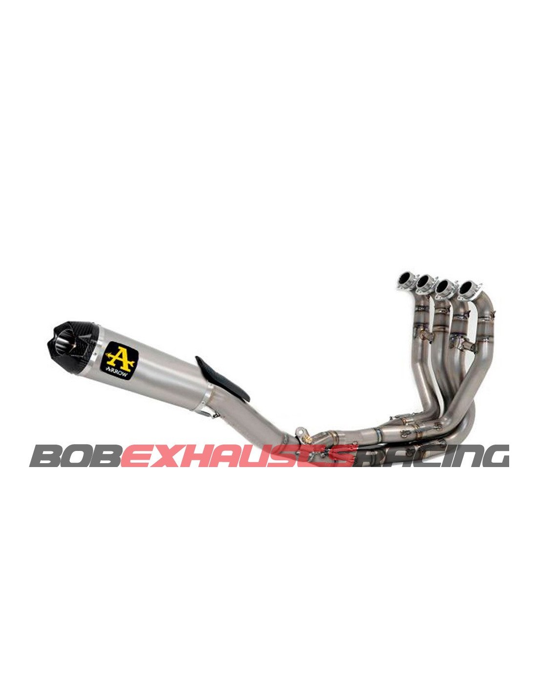 La línea de Competición estudiada por los técnicos del Departamento Investigación y Desarrollo de Arrow Special Parts, nació para motos preparadas para que puedan competir en los circuitos. Los escapes de competición presentan muchas diferencias cuando se comparan con un escape Arrow estándar. Es necesario incrementar el diámetro, hacer diferentes soluciones para cambios de sección y un diseño de silencioso especial. Cada una de estas características ha sido diseñada para garantizar un mejor rendimiento de los motores preparados y como consecuencia, más potentes. La línea más prestigiosa de Arrow es la de Competición. Estos sistemas se basan directamente en los escapes que nuestros técnicos del Departamento de Investigación y Desarrollo han desarrollado y continúan desarrollando para los equipos mas importantes de SBK y SS a nivel mundial. Estas piezas maestras están hechas de los mejores materiales y productos para pistas, además de la mejor tecnología en los circuitos. Se ensamblan completamente con soldadura T.I.G. Los escapes de Competición están disponibles en la versión 'Full Titanio', totalmente en titanio, (empleando una aleación de titanio), o con colectores en acero inoxidable. Los dos kit de colectores tienen un engache para que la sonda de oxígeno pueda verificar y corregir rápida y fácilmente la programación de la centralita, según las condiciones del clima y del circuito. El diseño de los silenciosos le da a las motos una apariencia física típica de Arrow y también asegura altos desempeños manteniendo los niveles de ruído dentro de los límites permitidos por la regulación de la competición. Está disponible la versión con terminación posterior en carbono. Debido a las restricciones del ruido de las motos en las pistas y de las revisiones en los circuitos por toda europa, hay una versión disponible con Db killer extraíble.