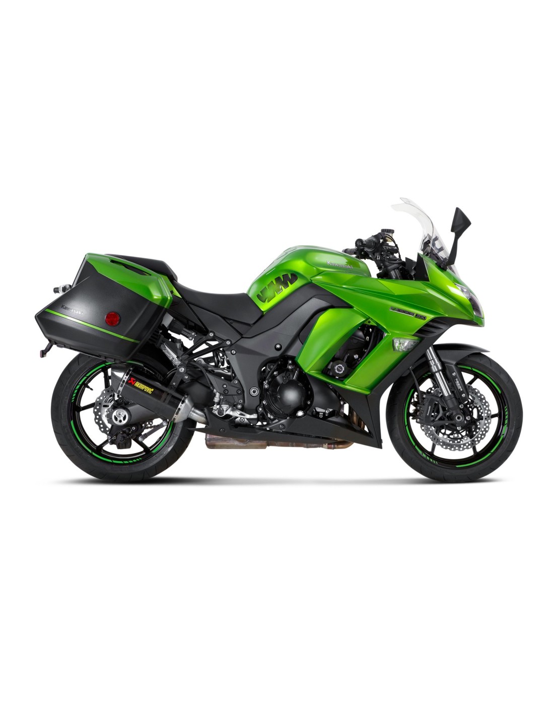El sistema Slip-On es compatible con las maletas laterales Kawasaki.