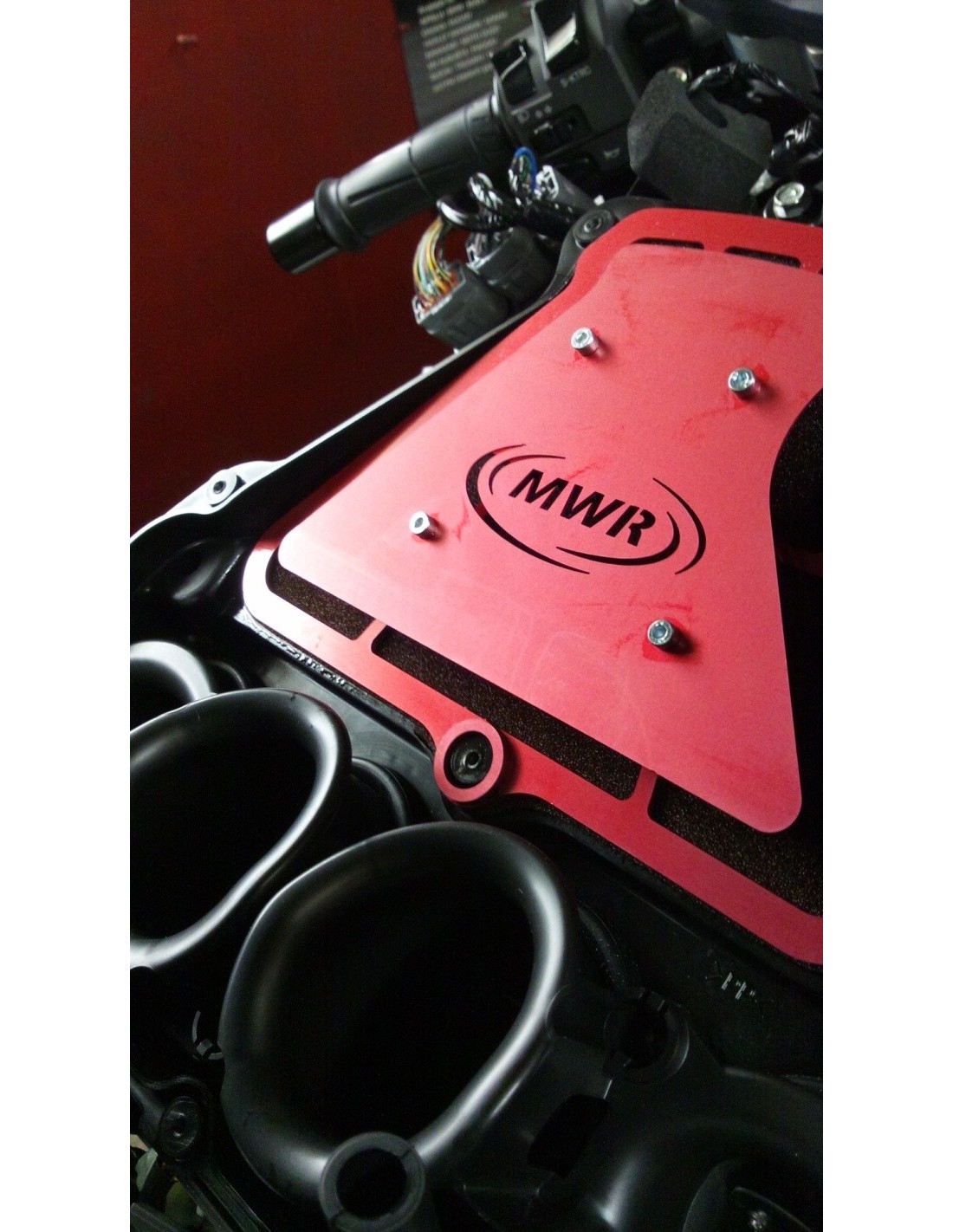 El filtro de aire de alta eficiencia MWR, para motos de carretera y de competición. El objetivo de este diseño revolucionario es reducir el ruido de entrada y, aún más, aumentar la potencia. Este diseño ha demostrado una reducción de hasta 8 db en comparación con otros filtros para motos deportivas.