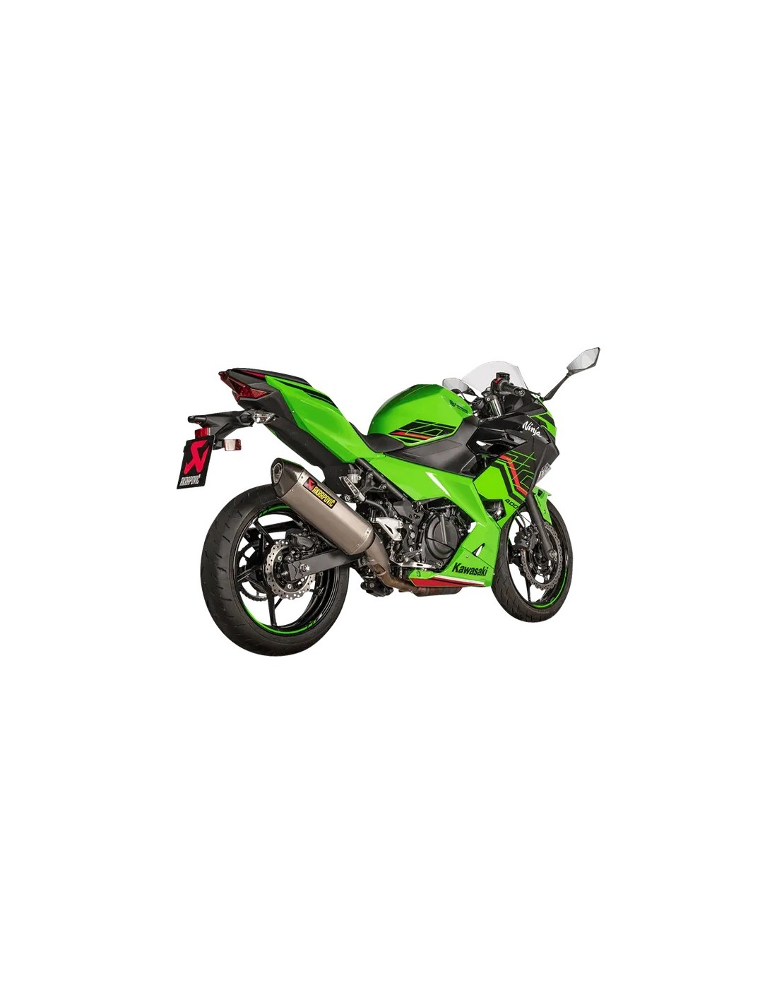 Transforma tu moto añadiendo más potencia, un rendimiento mejorado en comparación con una Kawasaki Ninja 400 equipada con un sistema de escape estándar y el sonido único de Akrapovič.