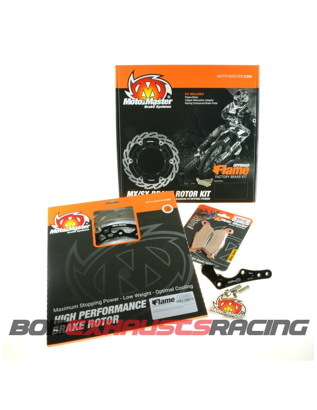 Contenido del kit: Disco sobredimensionado de 270 mm, adaptador de pinza y un juego de pastillas de freno delantero en compuesto de competición Moto-Master Nitro Sport