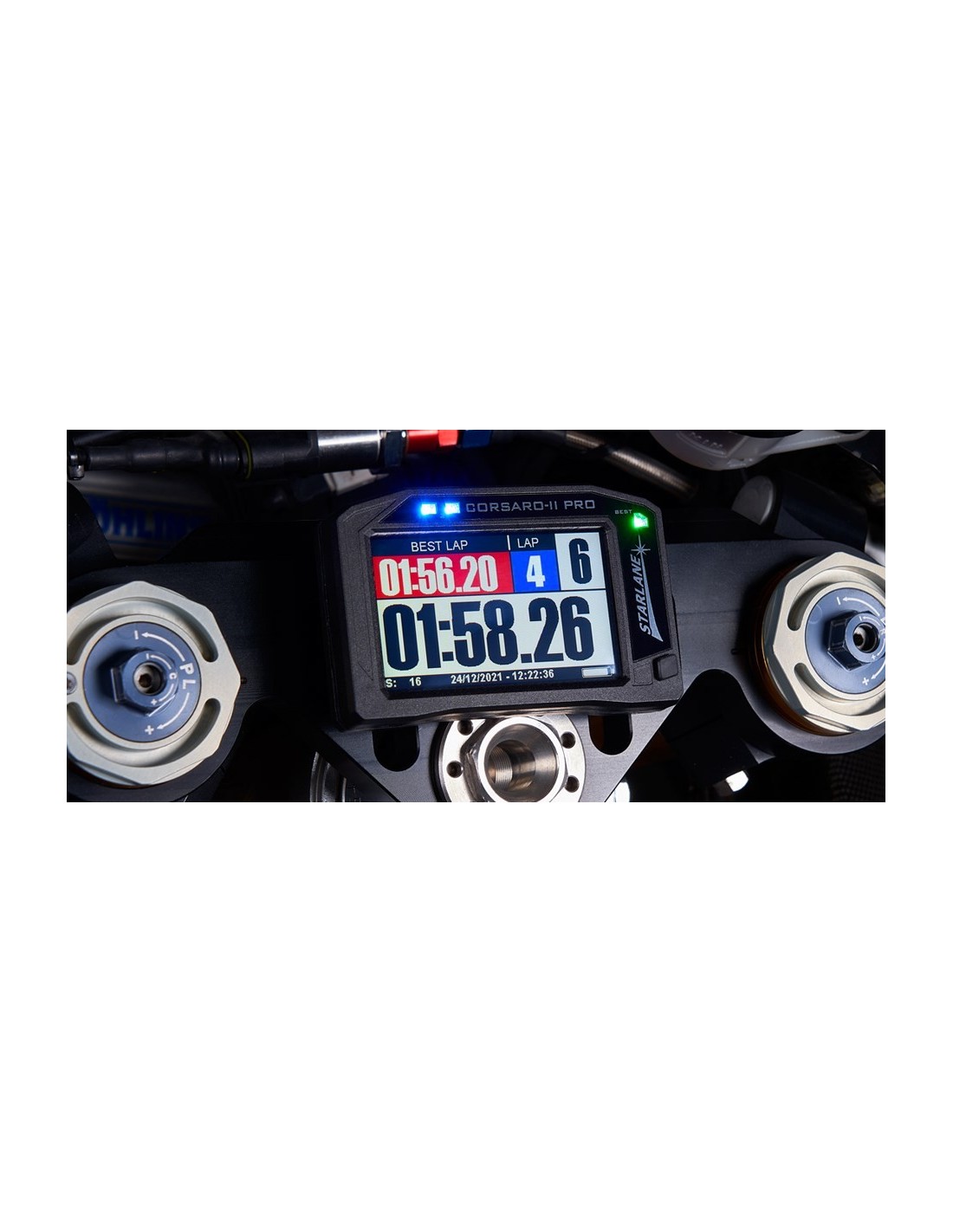 Durante cada vuelta, el tiempo de vuelta esperado y la ganancia se muestran en la pantalla de antemano con respecto a una vuelta de referencia seleccionable a elegir entre: mejor de la sesión - mejor del día - mejor de una sesión de su elección en memoria.