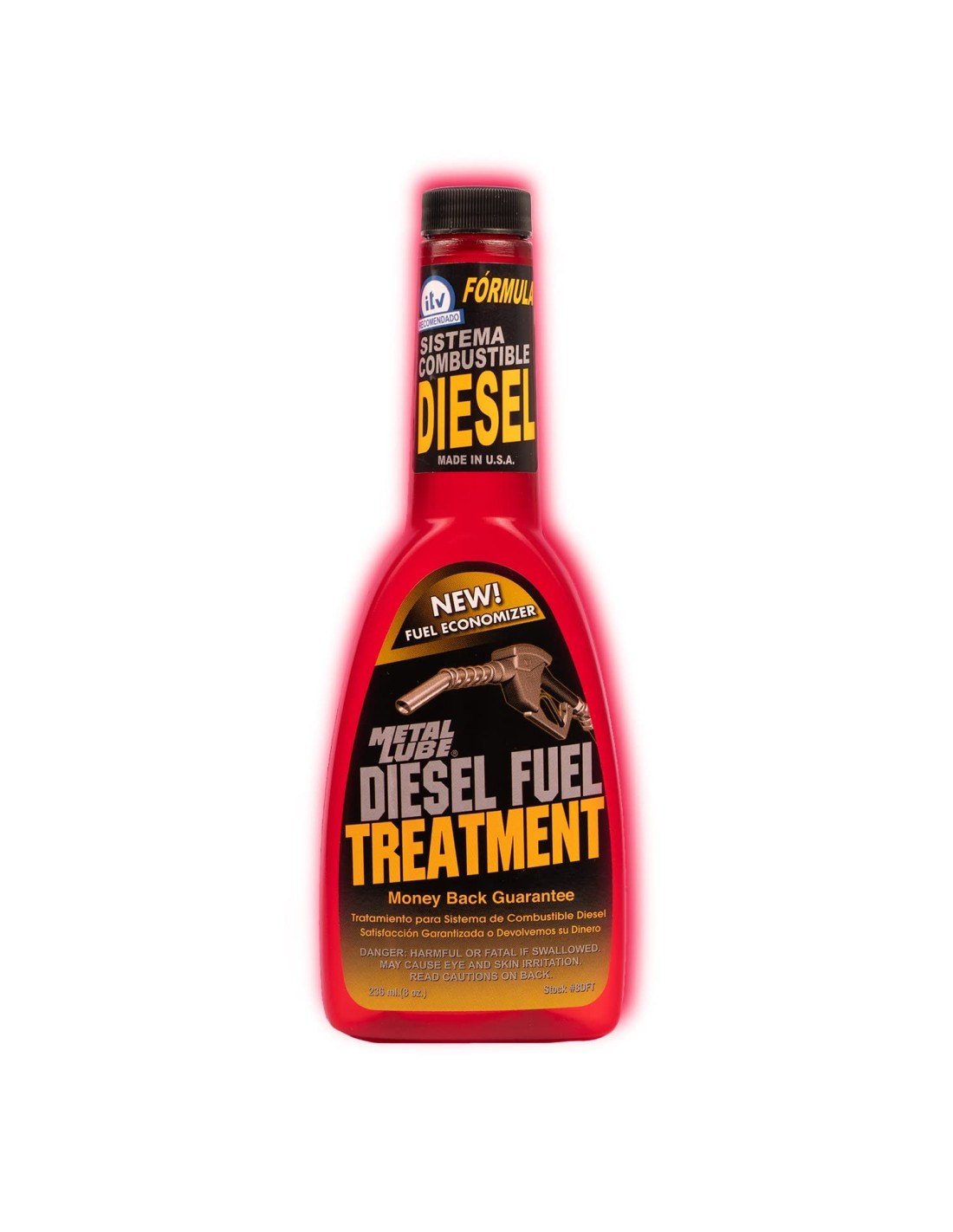 INSTRUCCIONES DE USO: La primera vez que utilice Metal Lube DIESEL FUEL TREATMENT recomendamos el envase de 236 ml., previo al momento de repostar, a deposito lleno, ó si lo desea el equivalente a 4 ml. por litro de combustible diesel.