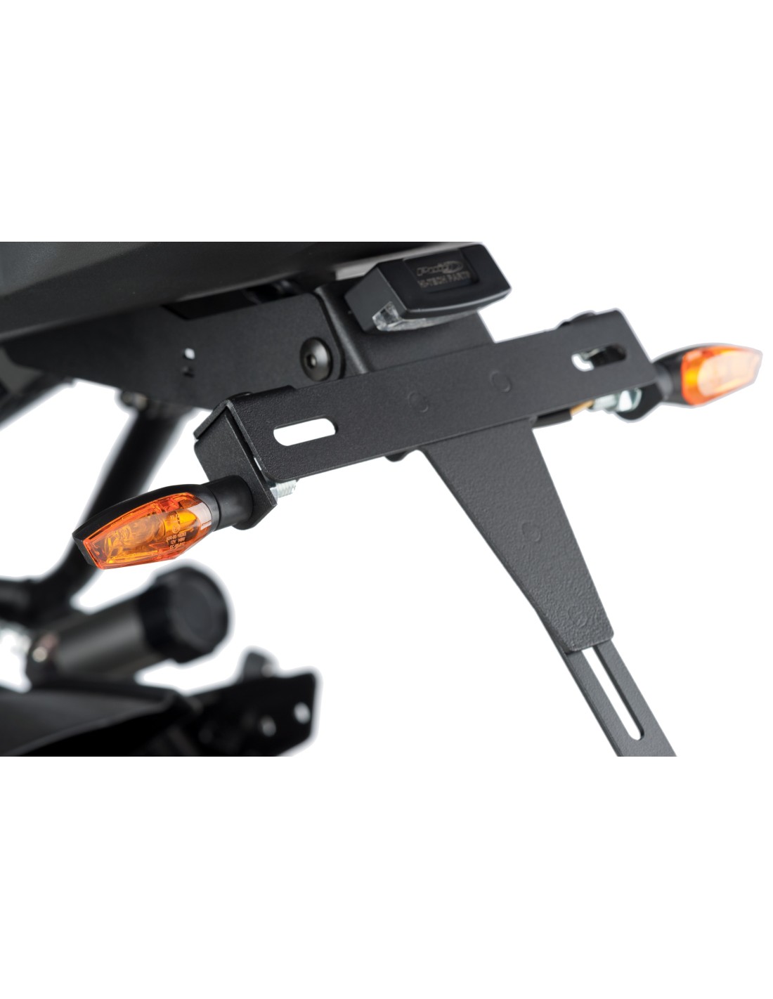 Intermitentes homologados de brazo corto (63x24mm) con cristal ámbar y disponibles en dos colores negro y aluminio anodizado. El intermitente se sirve con dos juegos de tulipas en acabado ahumado y láser. Función intermitente.