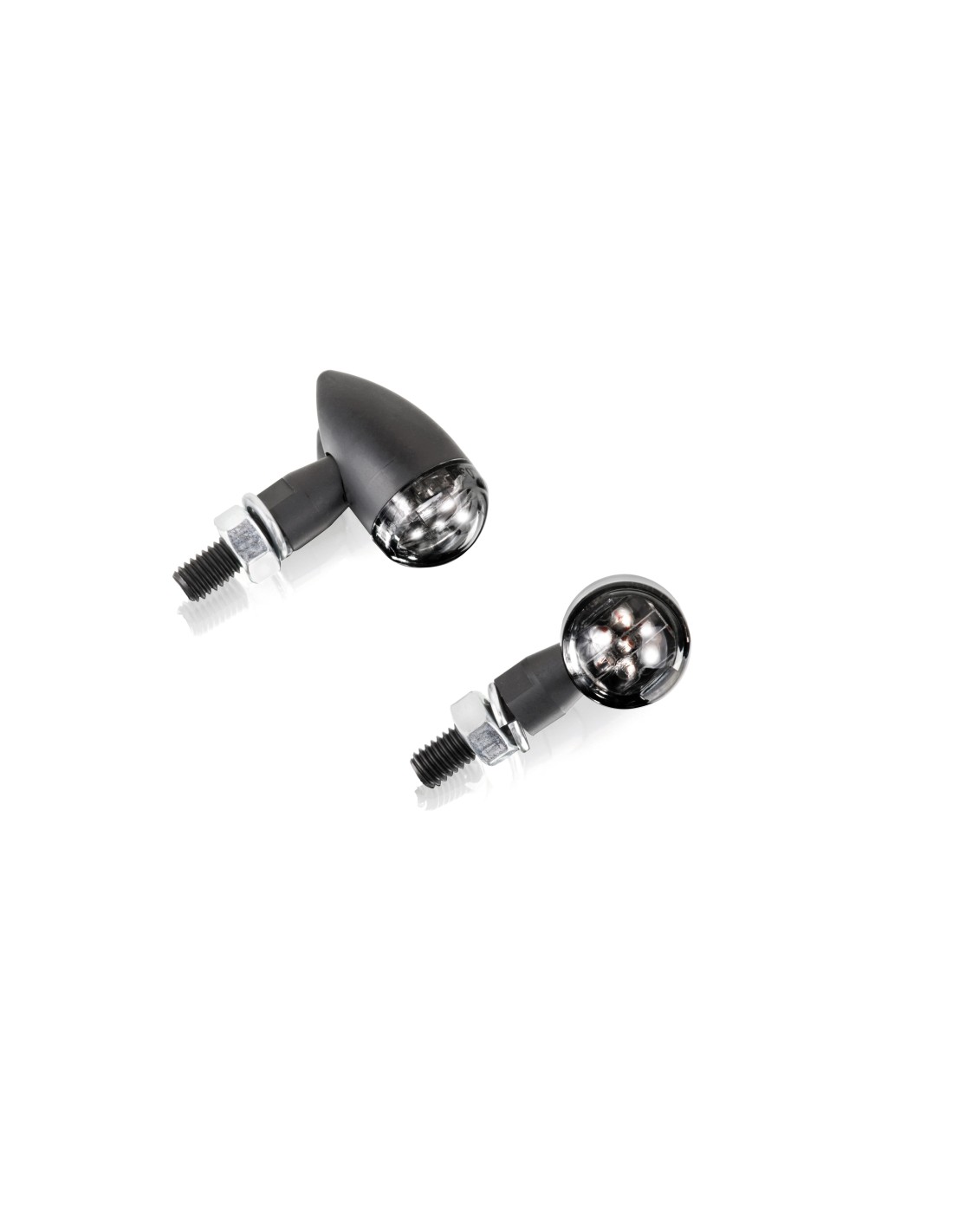 Intermitentes en color negro y con luces LED, se diferencian del resto de su gama por incorporar cristales en acabado ahumado y su tamaño reducido (27x34,20mm). Función intermitente.