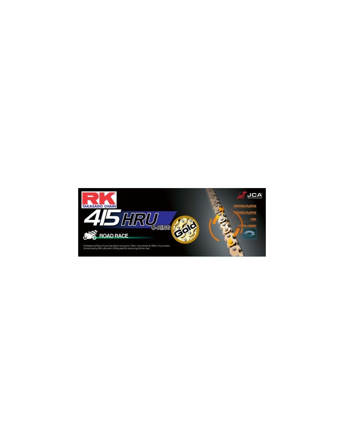 La RK GB415HRU se desarrolló junto con los mejores equipos de Moto3 para pesar solo 6,9 g/eslabón, la cadena sellada 415 más liviana disponible en el mercado hoy en día, al tiempo que garantiza el mejor rendimiento en la pista de carreras.