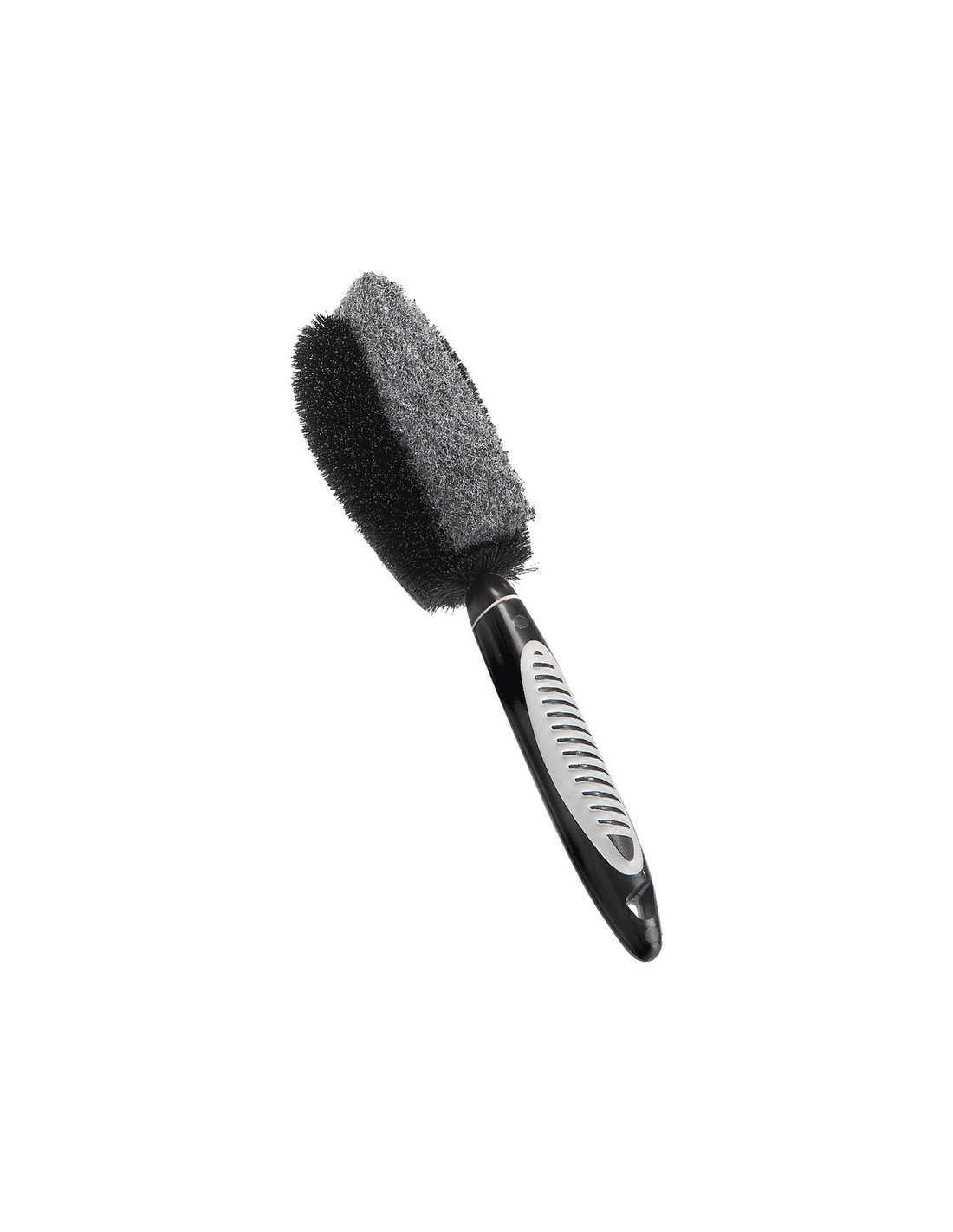 Cepillo de limpieza diseñado en dos materiales, uno de nylon duro y otro de esponja suave.