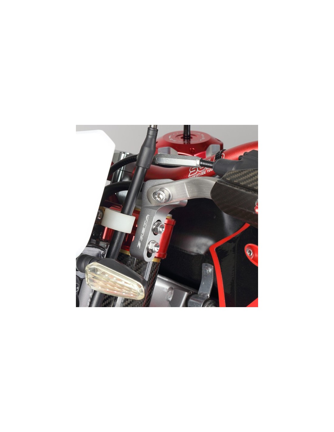 - Se puede utilizar en motocicletas con los pernos de la horquilla de la abrazadera superior colocados desde el lateral.