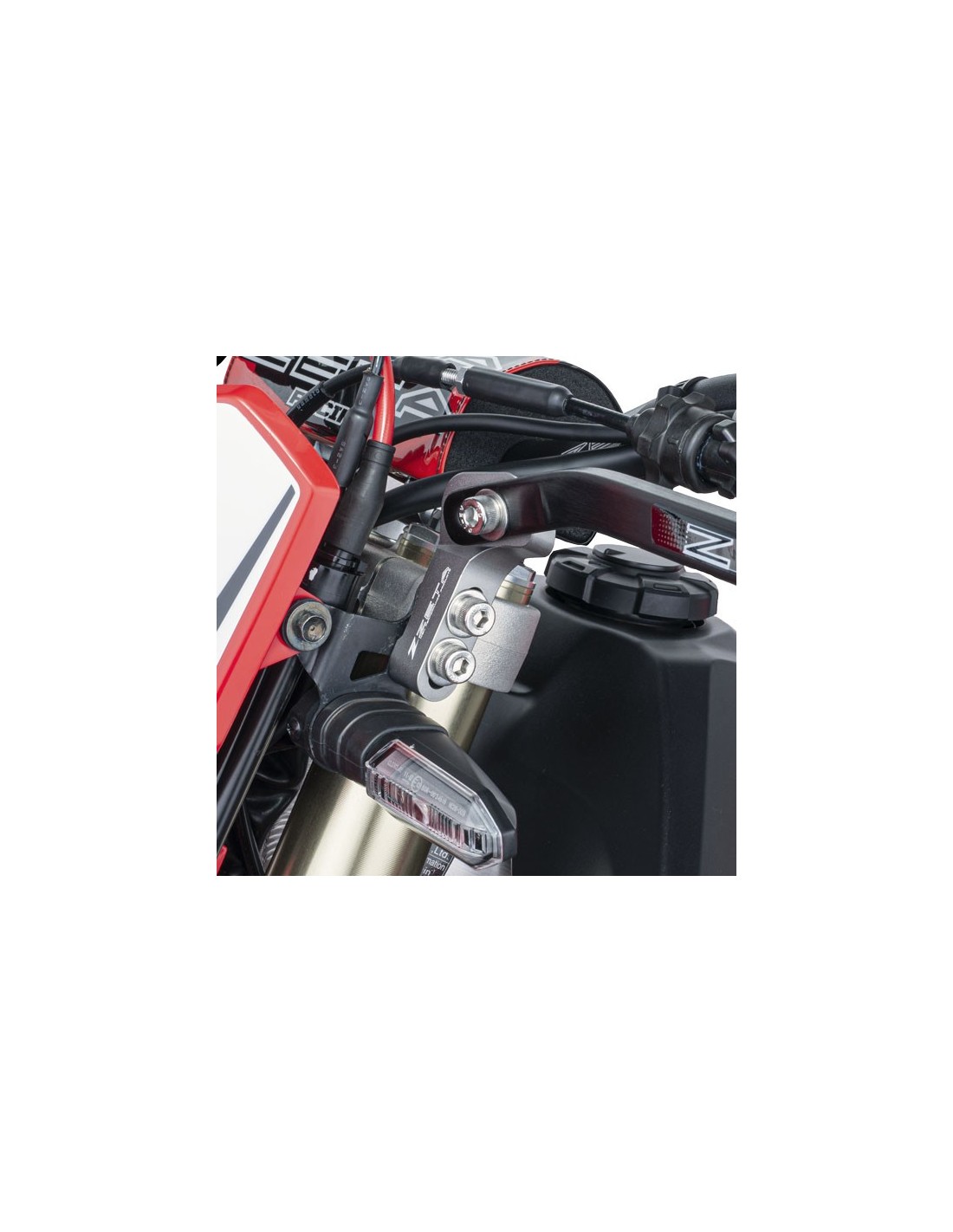 - Se puede utilizar en motocicletas en las que los pernos de la horquilla de la abrazadera superior se colocan desde la parte delantera.