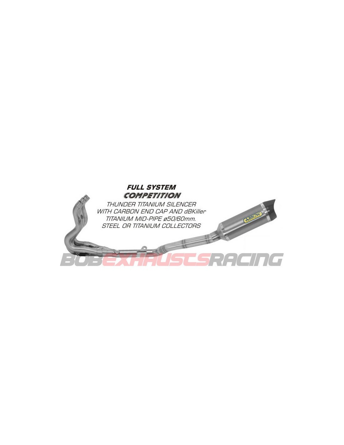 Sistema completo ARROW Thunder titanio copa carbono. Características titanio Material del cuerpo titanio Material interno silencioso titanio Material del conector titanio, acero inox Material de los colectores carbono Material del terminal posterior abrazadera de carbono Tipo de fijación silencioso 270 Longitud del cuerpo mm 60 Diámetro de injerto mm 50 Diámetro de salida mm Si Inclusión del dB-killer Si Inclusión de la Sonda Lambda
