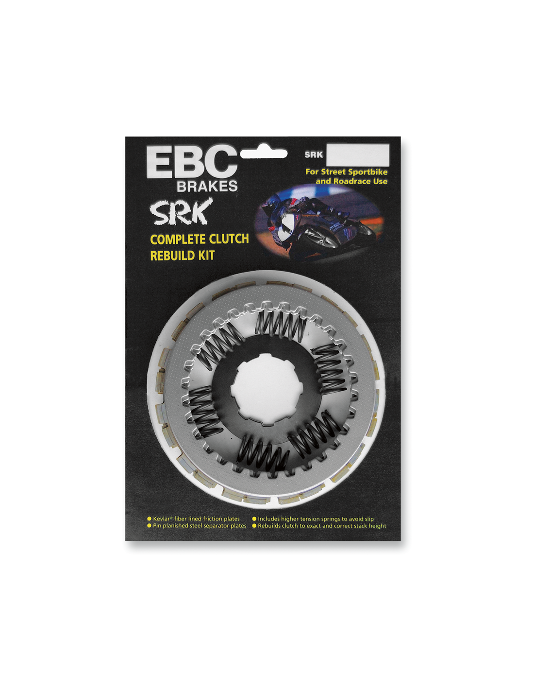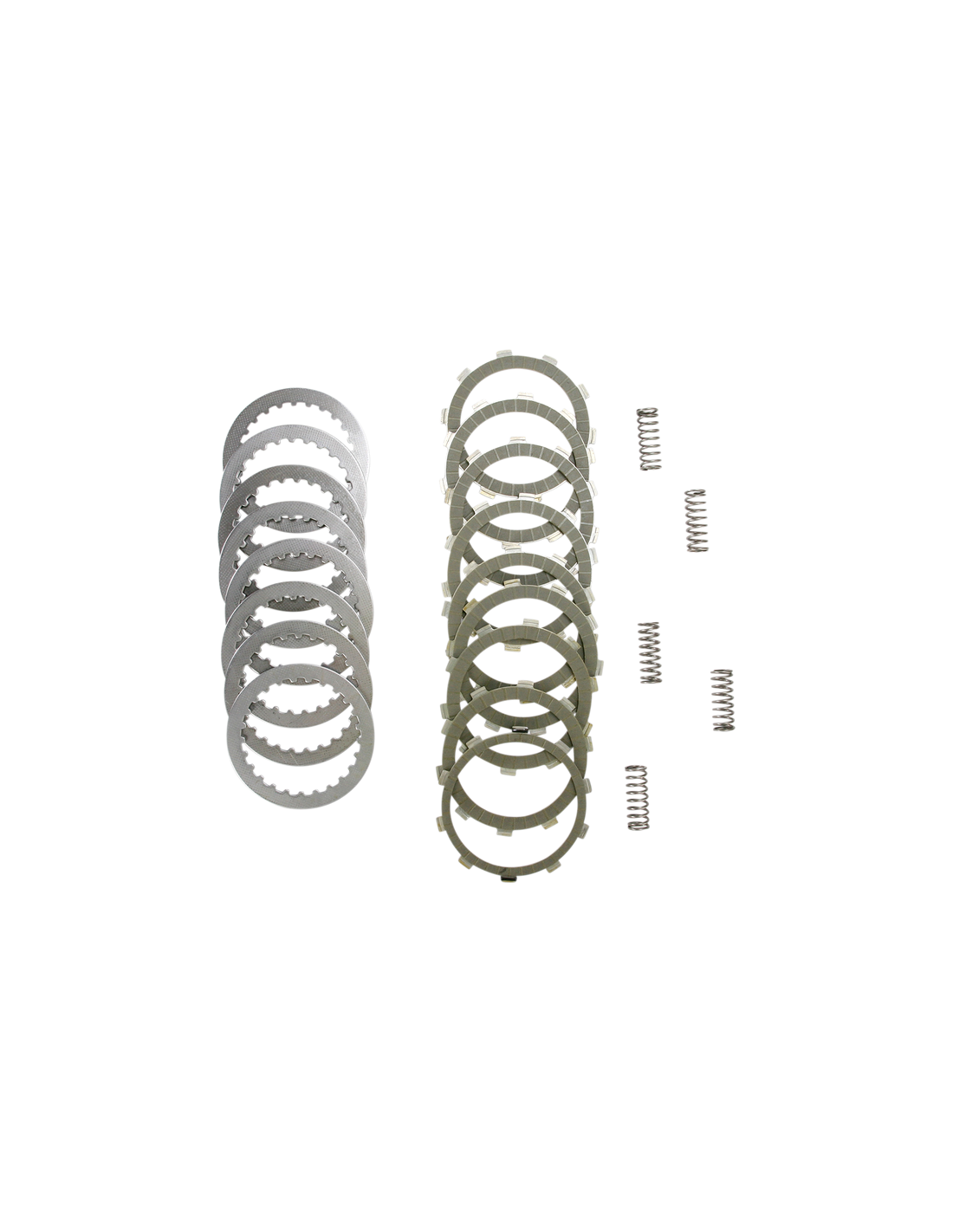 Set completo de discos de embrague serie SRK. - Discos revestidos de kevlar. - Muelles reforzados inlcuidos. - Platos separadores de acero incluidos. Si no encuentras tu moto, contacta con nosotros.