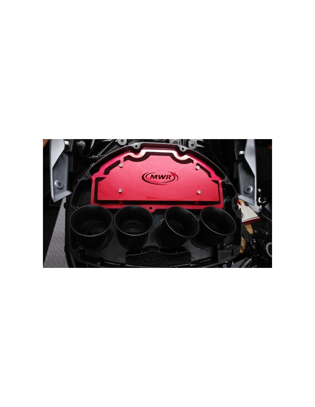 El filtro de aire de alta eficiencia MWR para motos de carretera y de competición. El objetivo de este diseño revolucionario es reducir el ruido de entrada y, al mismo tiempo, aumentar la potencia. Este diseño ha demostrado una reducción de hasta 8 db en comparación con otros filtros para motos deportivas.