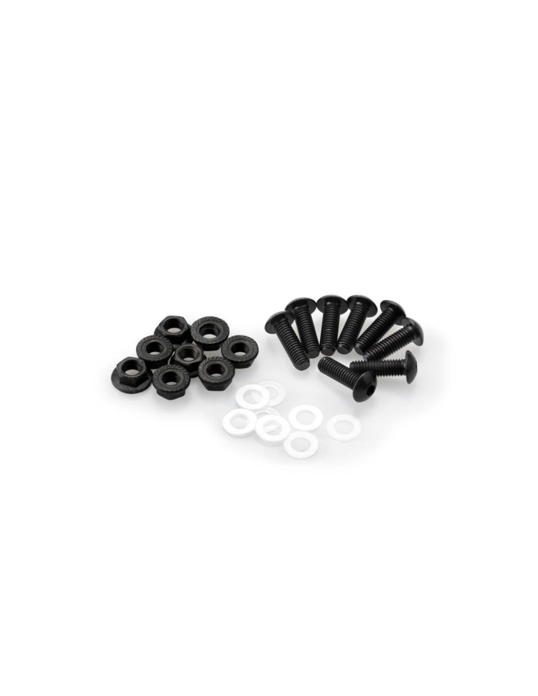 Kit de tornillería anodizada en colores para cúpulas. El Kit se compone de: 8 tornillos de M5x16 en color, 8 arandelas de plástico y 8 silentblocks.