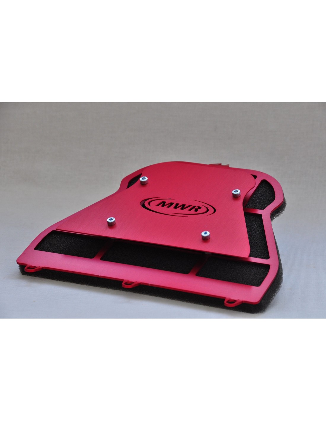 El filtro de aire de alta eficiencia MWR para motos de carretera y de competición. El objetivo de este diseño revolucionario es reducir el ruido de admisión y, aún más, aumentar la potencia. Este diseño ha demostrado una reducción de hasta 8 db en comparación con otros filtros para motos deportivas.