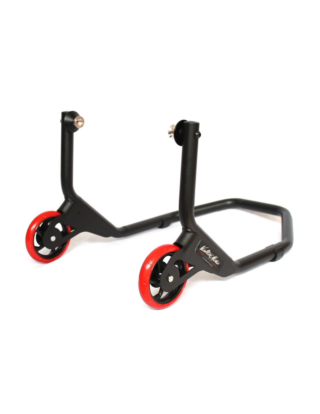 El caballete trasero Race Endurance está fabricado en acero y pintado con una pintura en polvo texturizada especial de larga duración. Incorpora dos ruedas VMC.