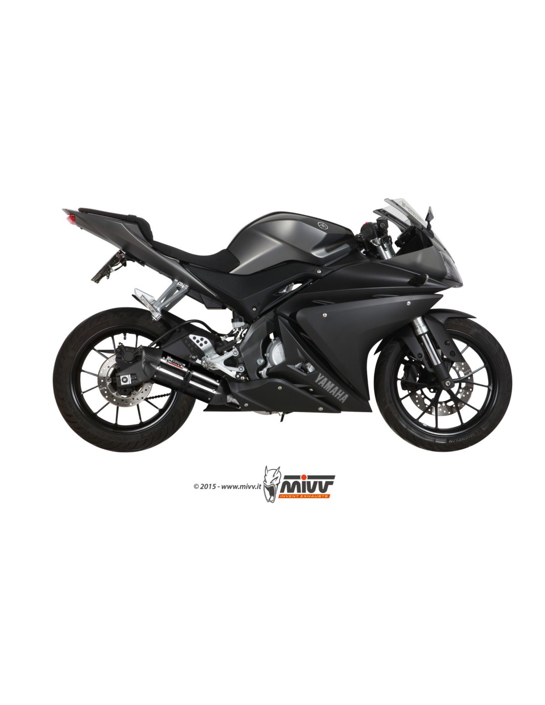 Calidad MIVV. Sistema completo. Escape con un cuerpo central en acero inox con efecto rallado denominado "Black Satin".