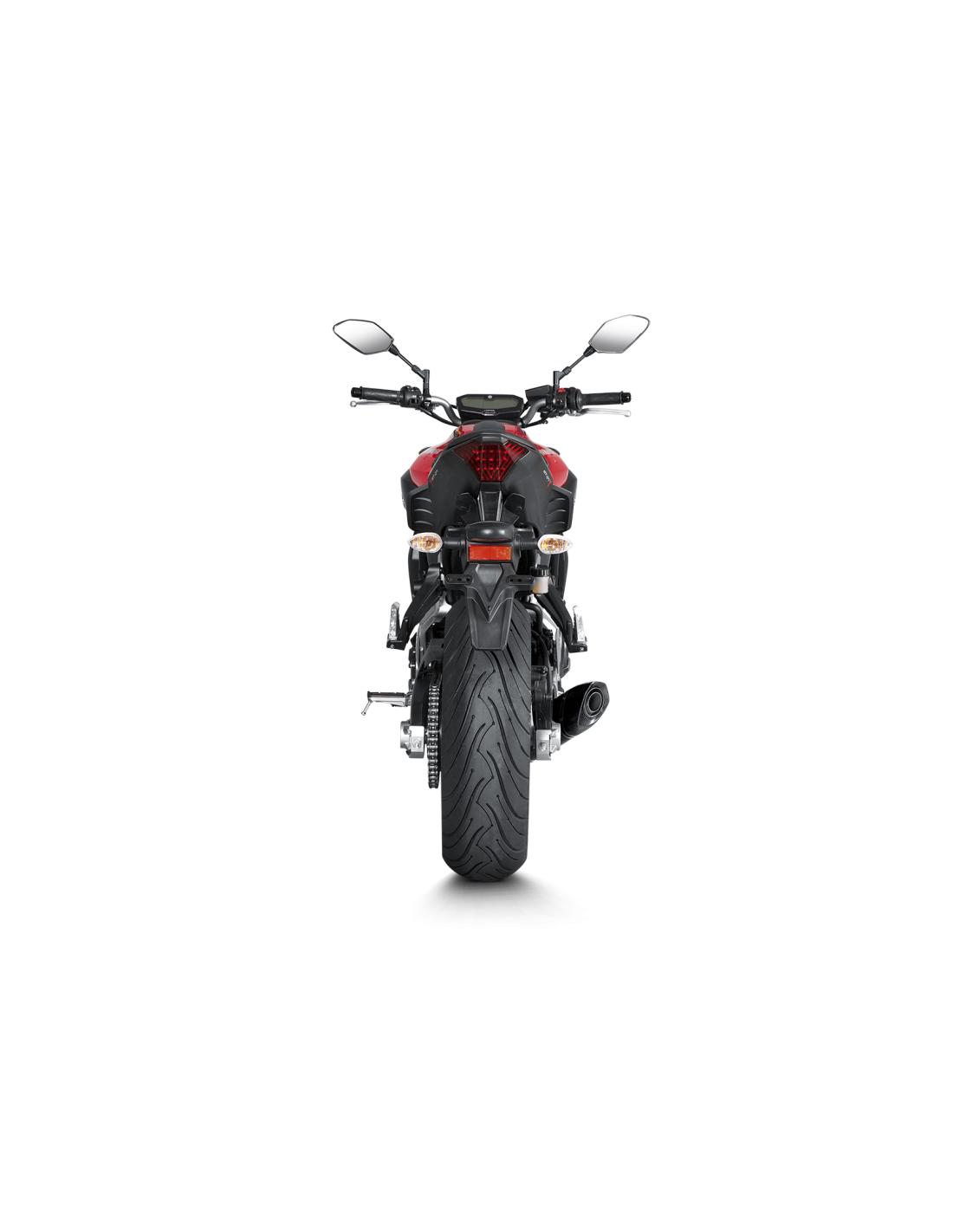 Este escape cuenta con una funda exterior ligera de fibra de carbono, combinada con tubos de enlace y colectores de acero inoxidable y rematada con una tapa de fibra de carbono, para crear un sistema 3,0 kg (41,7 %) más ligero que el de serie.