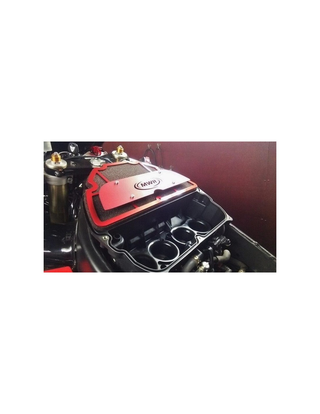 El filtro de aire de alta eficiencia MWR para motos de carretera y de competición. El objetivo de este diseño revolucionario es reducir el ruido de admisión y, al mismo tiempo, aumentar la potencia. Este diseño ha demostrado una reducción de hasta 8 db en comparación con otros filtros para motos deportivas.
