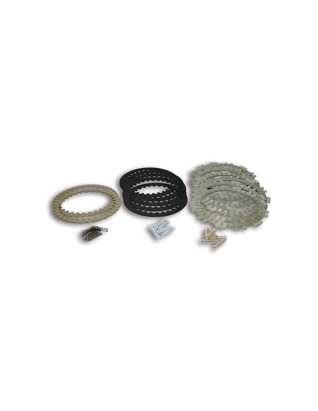 Kit completo the embrague para T-Max Caracteristicas tecnicas Discos con material que contiene fibras especiales sin amianto Diseñados para operar en baño de aceite Optimizados segun la resistencia al calor y de la progresividad del embrague Suministrados con 3 series de muelles de acero al carbono endurecido por una carga elevada de enervacion, protegidos con un tratamiento galvanico de alta resistencia termica