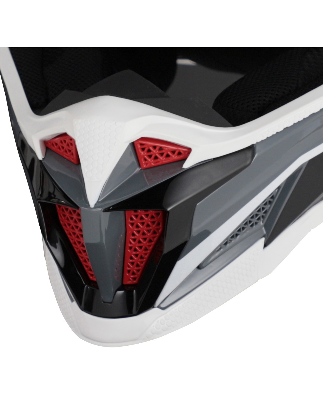 Fibre helmet with a double outer shell and a full shell that guarantee lightness and rigidity to the product. The visor with adjustable length, at the end, the result of careful collaboration between the technical team and the riders, has made it possible to guarantee a lower impact of mud on the mask during the race. The helmet's 18 air inlets ensure excellent air flow for excellent breathability. All this is helped by the soft touch system that ensures high moisture evacuation. The provision of the hydration system allows the rider a constant water intake even during the longest laps.