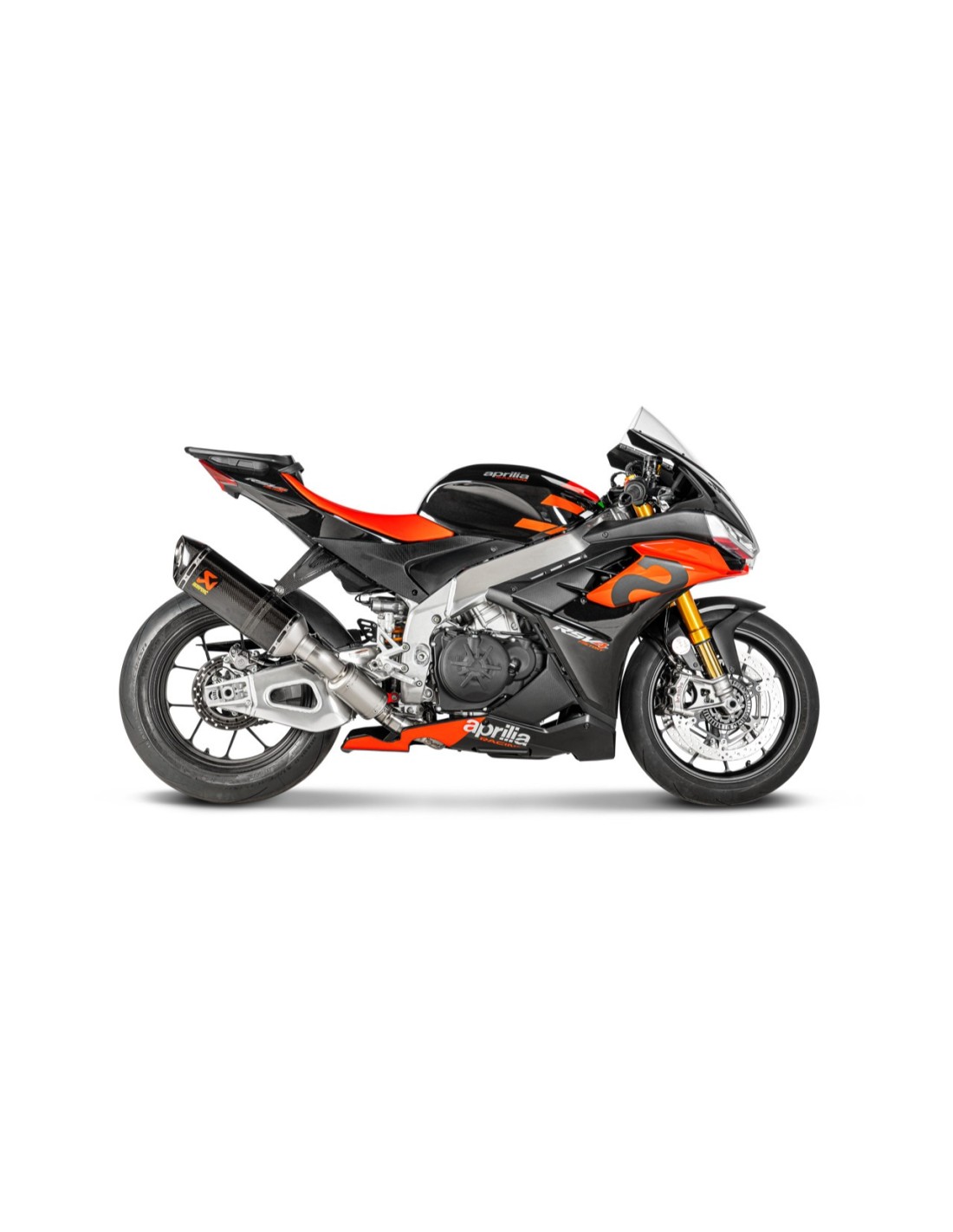 To match the performance and style, the Slip-On Line (Carbon) system delivers a deep, vibrant sound with the signature Akrapovič character, perfectly encapsulating the Aprilia engine.