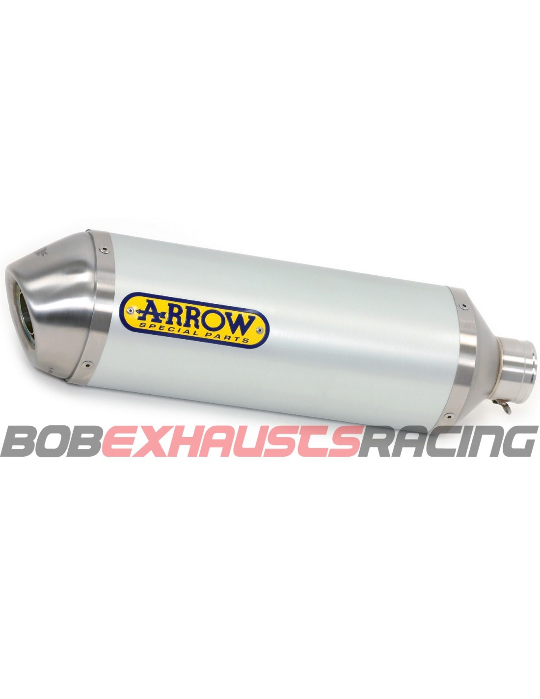 Race-Tech silencers are available in titanium, carbon fiber and aluminum. Aluminum is available in 3 different finishes: transparent anodized, black anodized (“Dark” version) and white painted (“White” version). Rear endcap is available in stainless steel or in carbon fiber.
