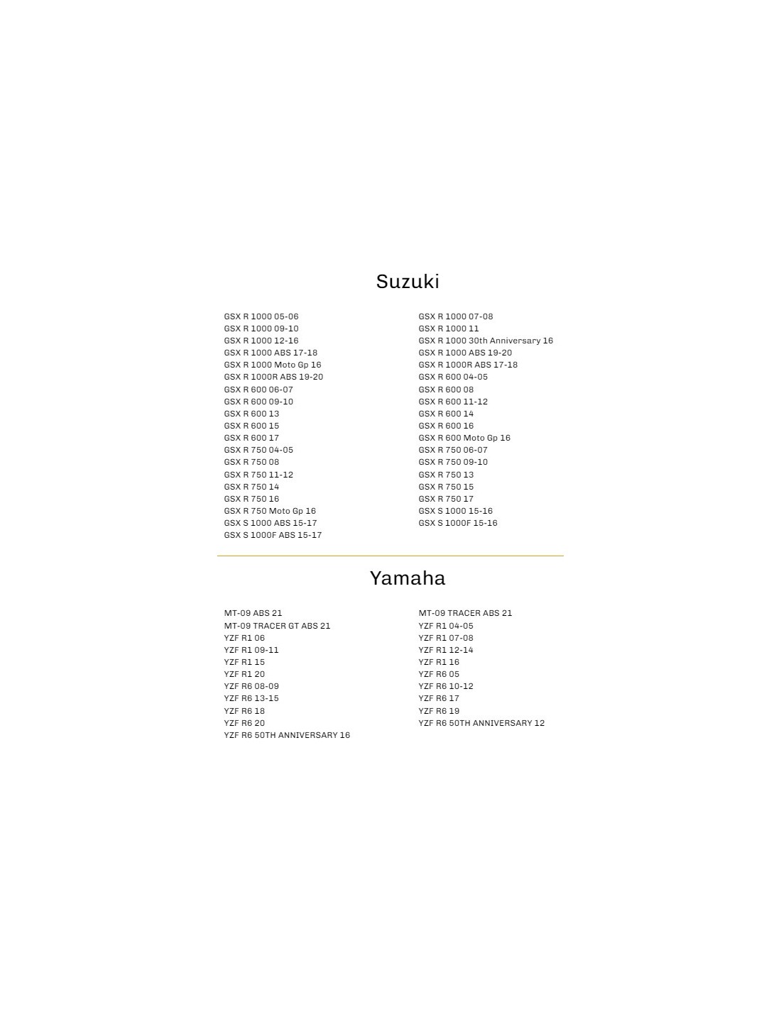 IN THE PICTURES YOU CAN SEE THE VALID MOTORBIKE MODELS