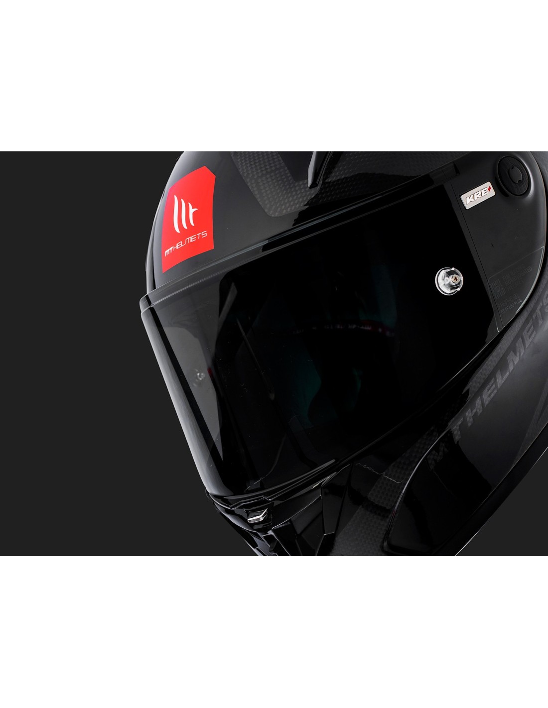 The shell of the KRE+, available in three different sizes, is made of carbon fibre with an optimised interlocking composition for a better impact response.