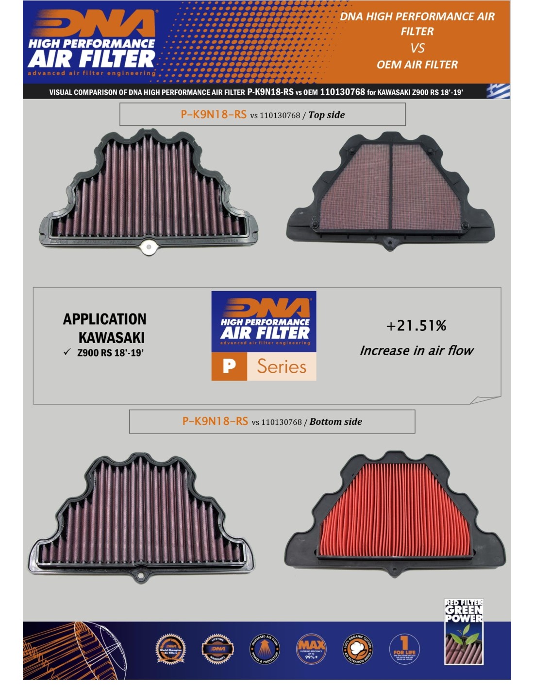 DNA AIR FILTER KAWASAKI P-K9N18-RS