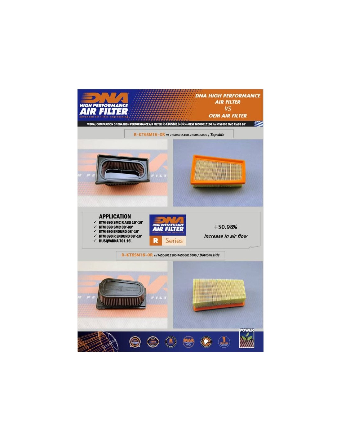 The flow of this DNA FCD filter is 50.98% higher than the stock foam filter!