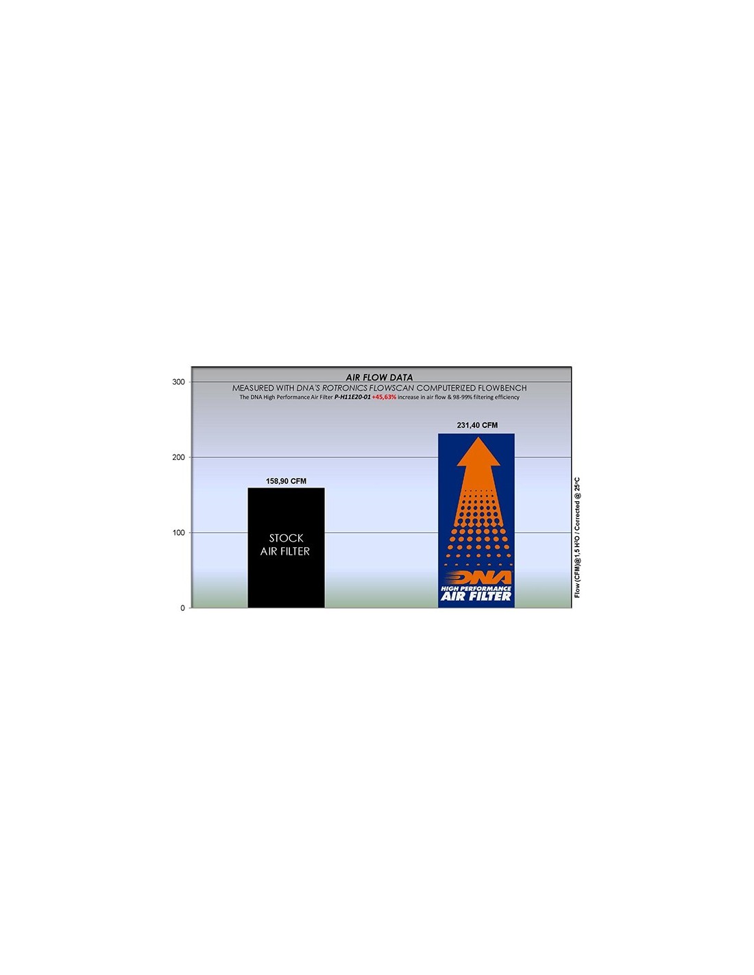 The flow of this DNA FCd filter is 45.63% higher than the stock paper filter!