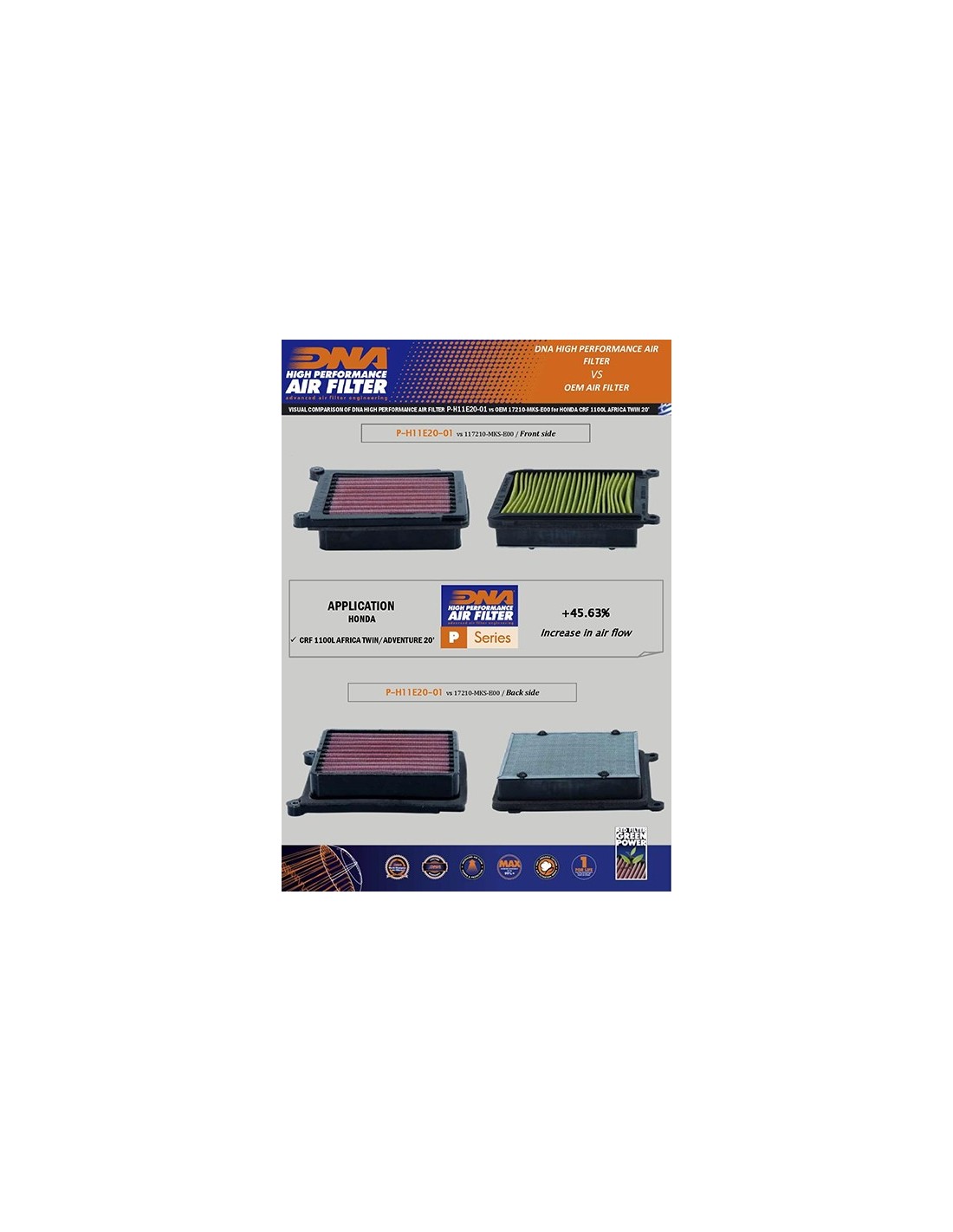 DNA replacement air filter designed to increase horsepower and acceleration while providing excellent filtration.