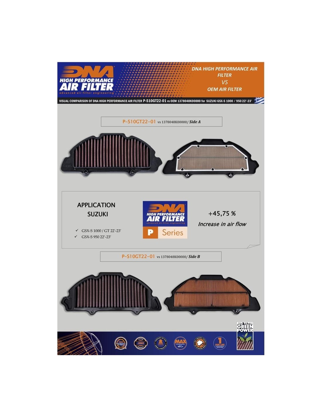 DNA SUZUKI AIR FILTER P-S10GT22-01