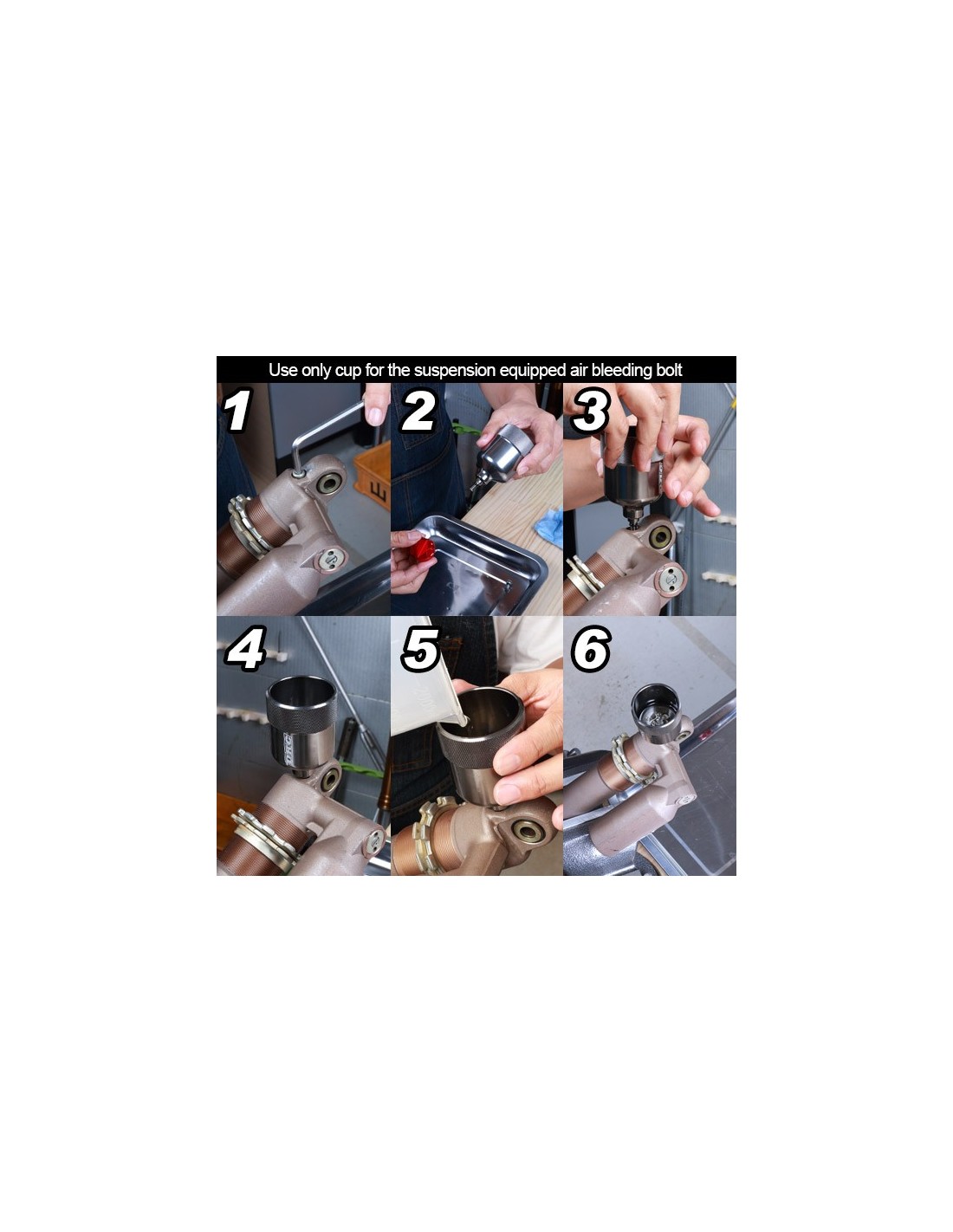 - Air bleed cup for KYB, SHOWA, and WP rear suspensions.