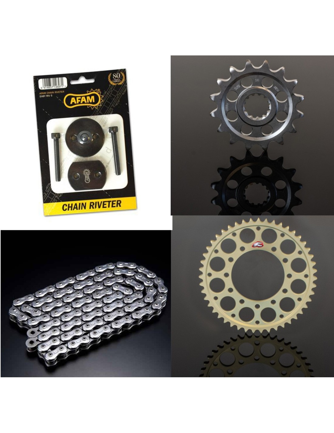 Renthal lightened steel sprocket and duraluminium sprocket set.