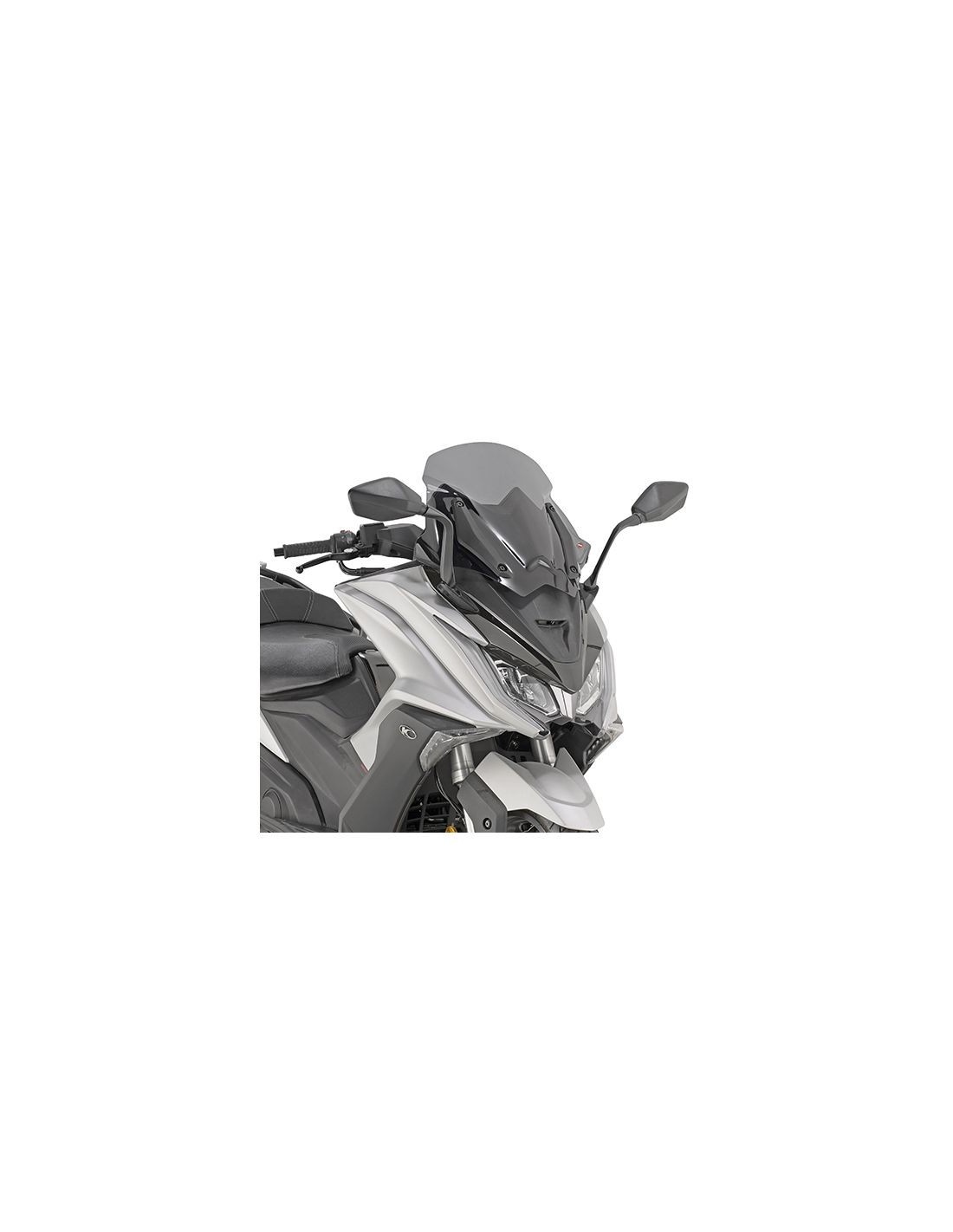 Specific, low and sporty smoked windscreen, 42 x 48.5 cm (height x length), to be mounted in place of the original windscreen.