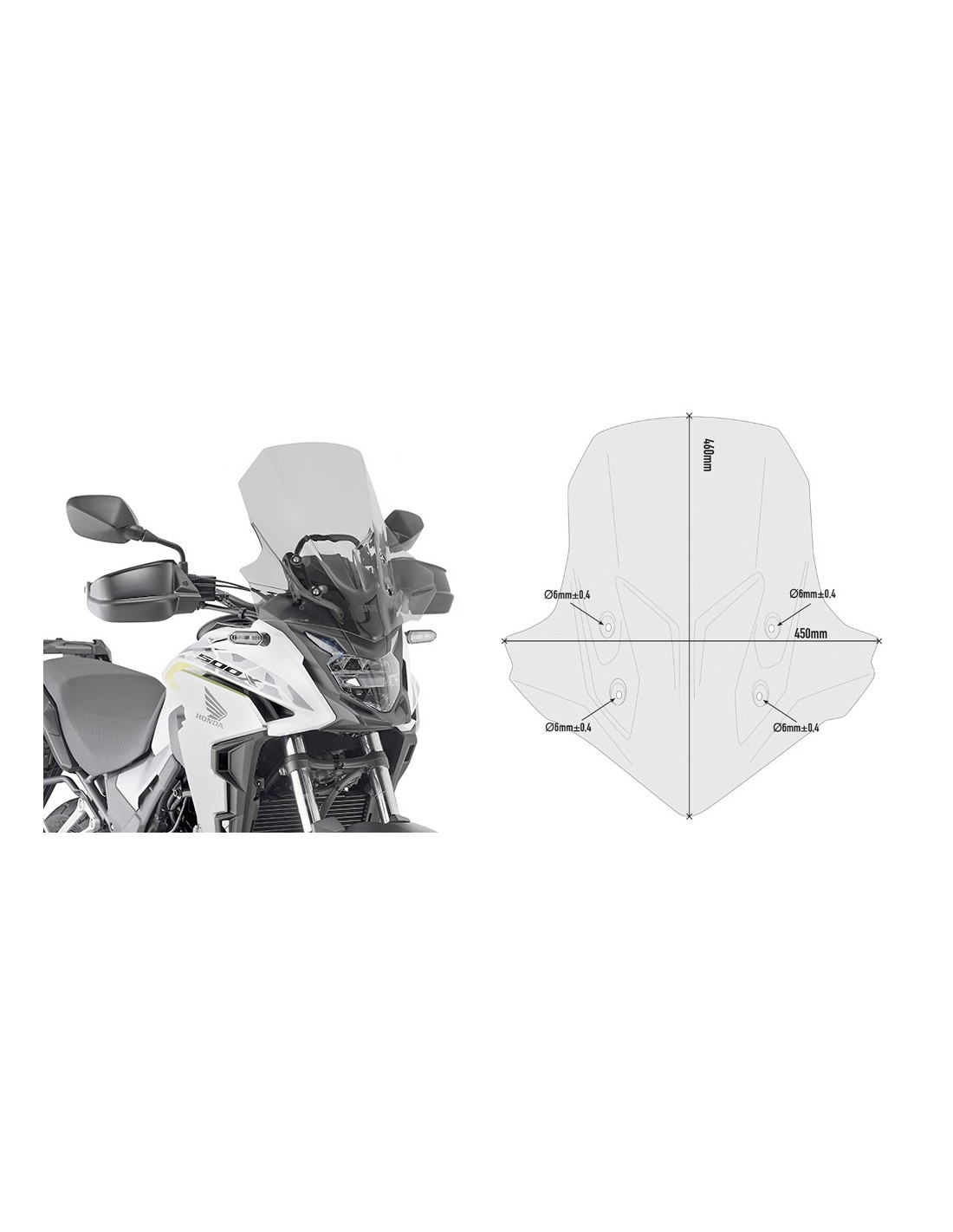 Specific smoked windshield 46 x 45 cm (height x length) to be mounted in place of the original windshield / 3 cm higher than the original