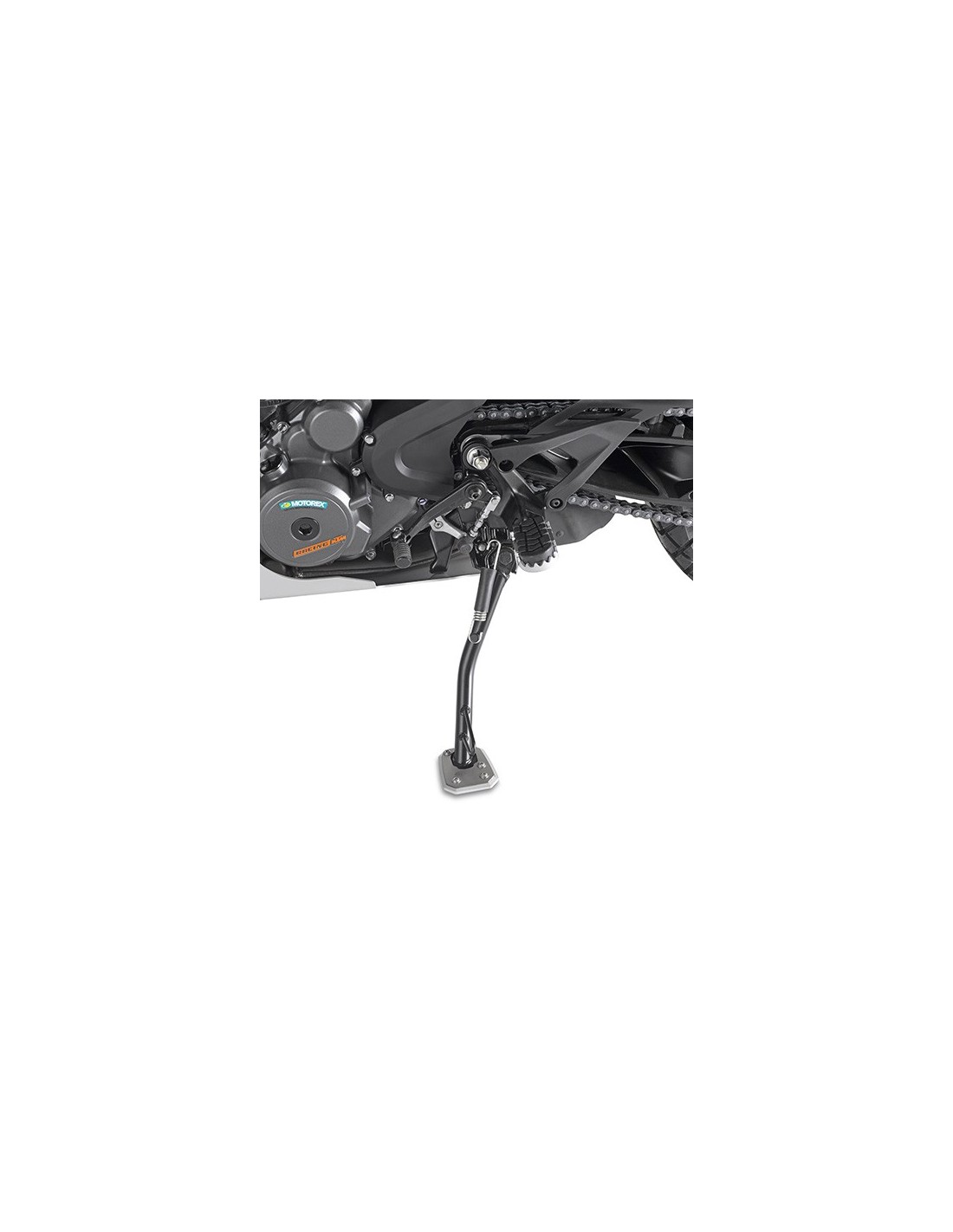 Specific support in aluminum and stainless steel to extend the support surface of the original side stand.